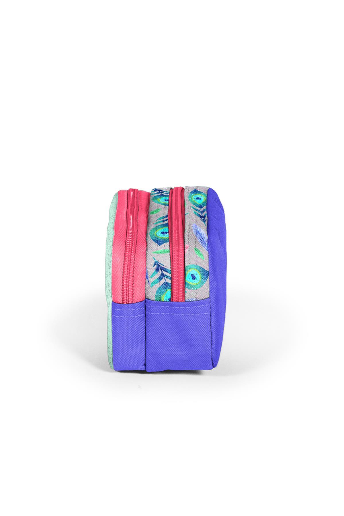 Coral High Kids Gümüş Lavanta Tavus Kuşu Desenli İki Bölmeli Kalem Çantası 12060