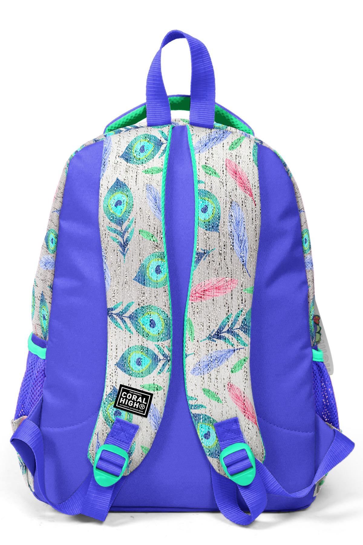 Coral High Kids Gümüş Lavanta Tavus Kuşu Desenli Üç Bölmeli Okul Sırt Çantası 23488