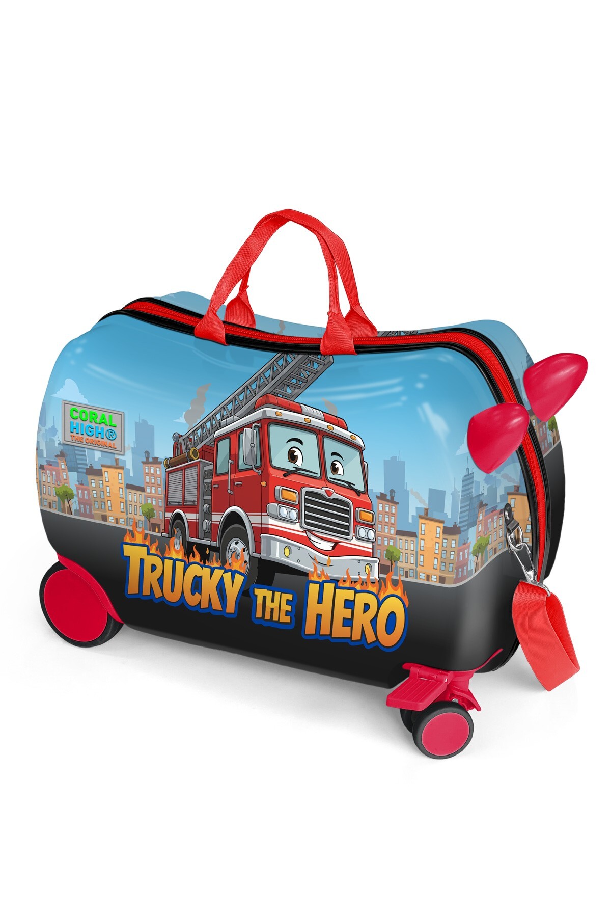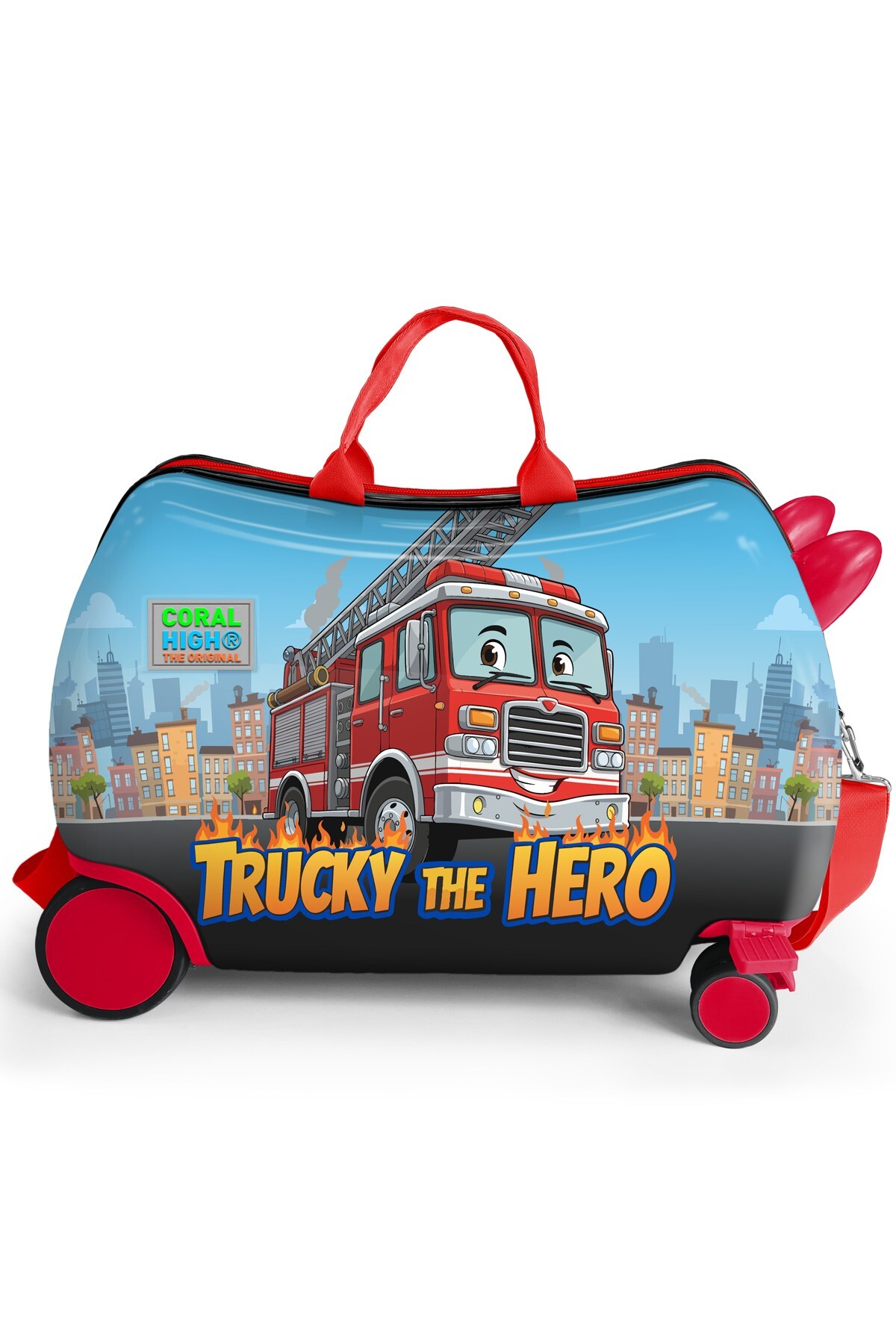 Coral High Kids İtfaiye Desenli Otur-Çek Çocuk Valizi 16373