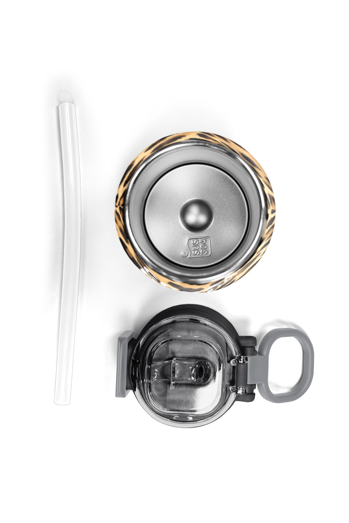 Coral High Kids Kahverengi Leopar Desenli Pipetli ve Direkt İçim Çelik Termos 500 ml 31881
