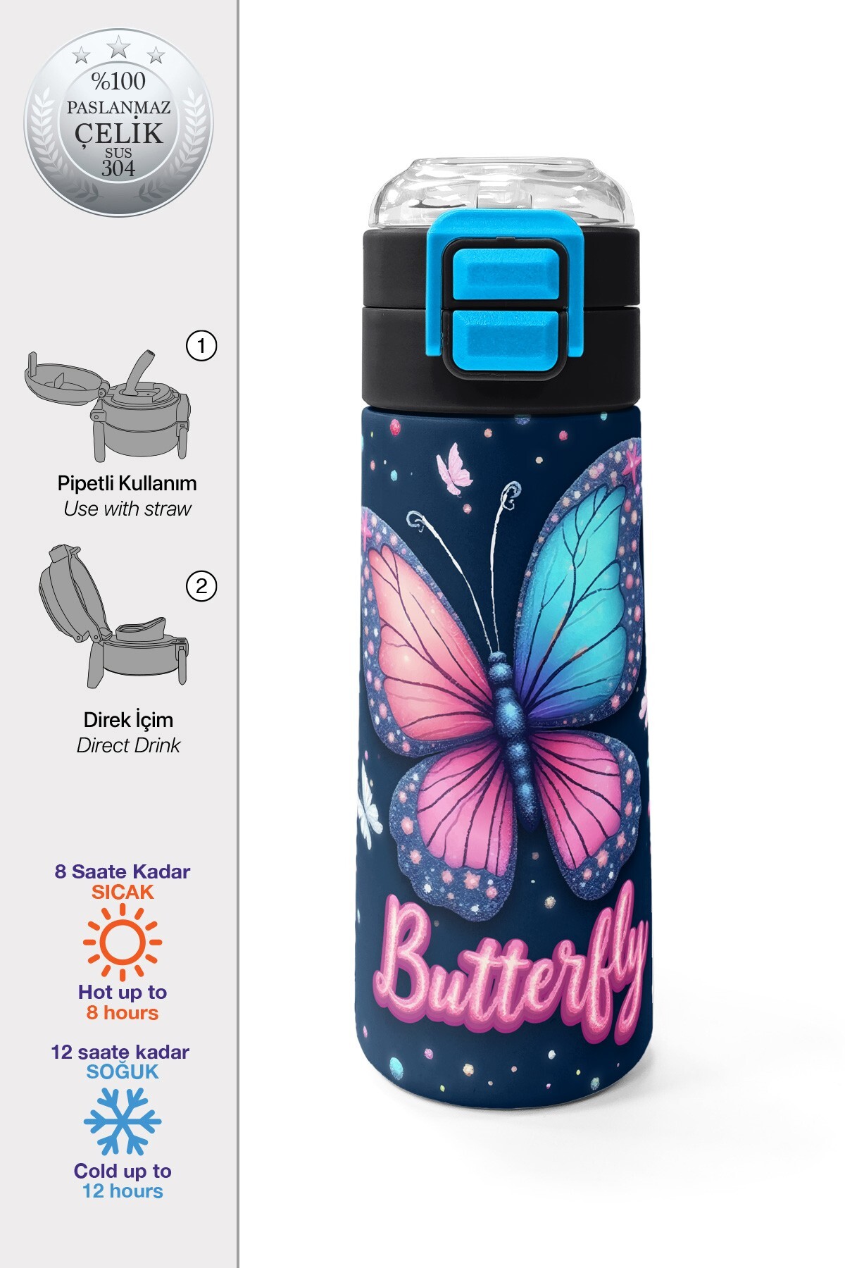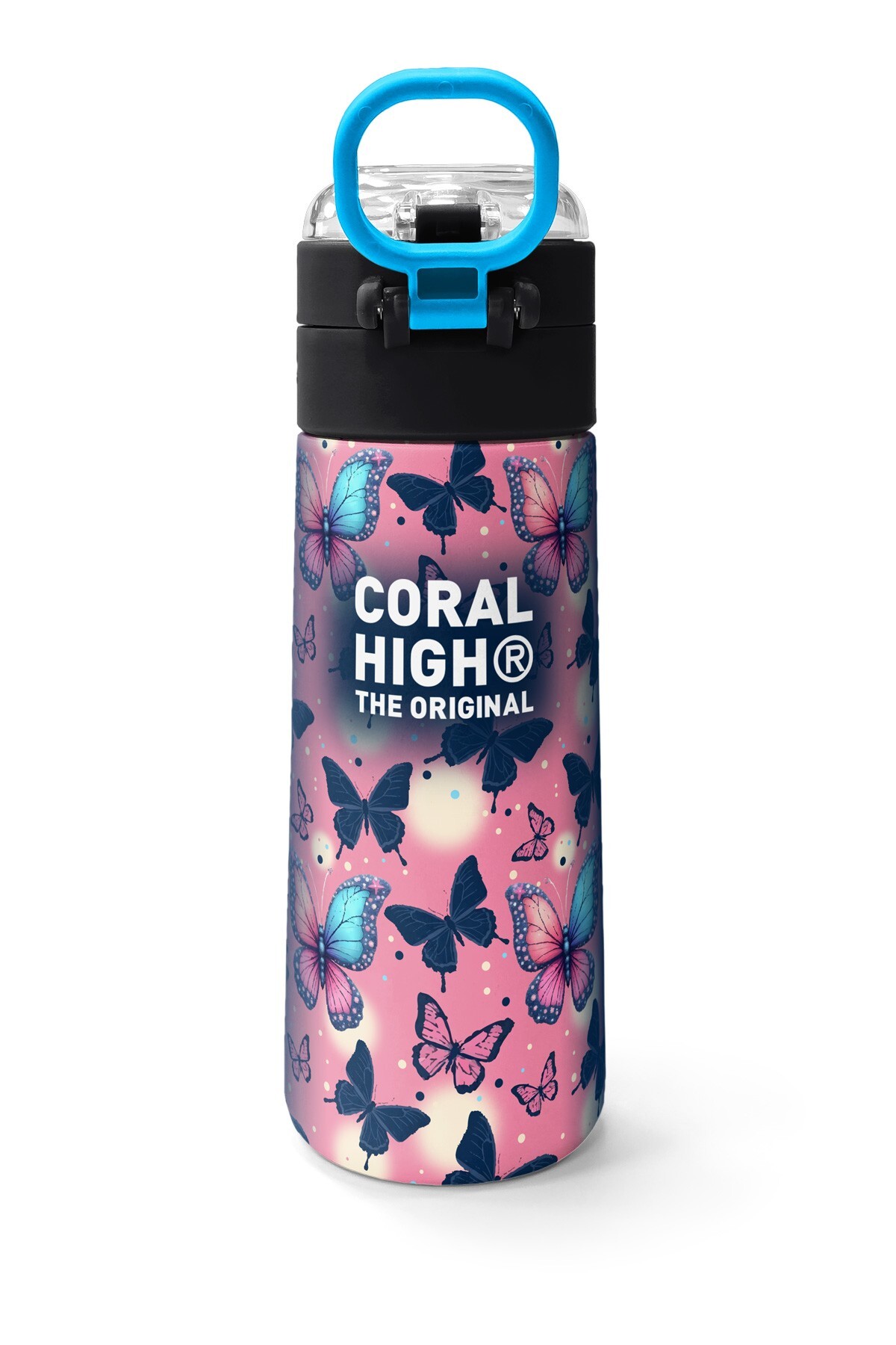 Coral High Kids Kelebek Desenli Pipetli ve Direkt İçim Çelik Termos 500 ml 38131