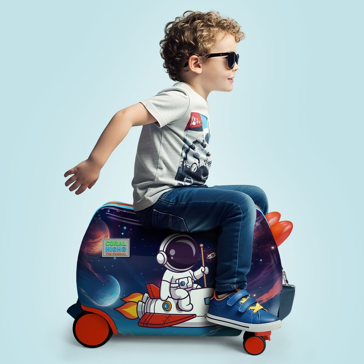 Coral High Kids Kırmızı Lacivert Astronot Desenli Otur-Çek Çocuk Valizi 16364