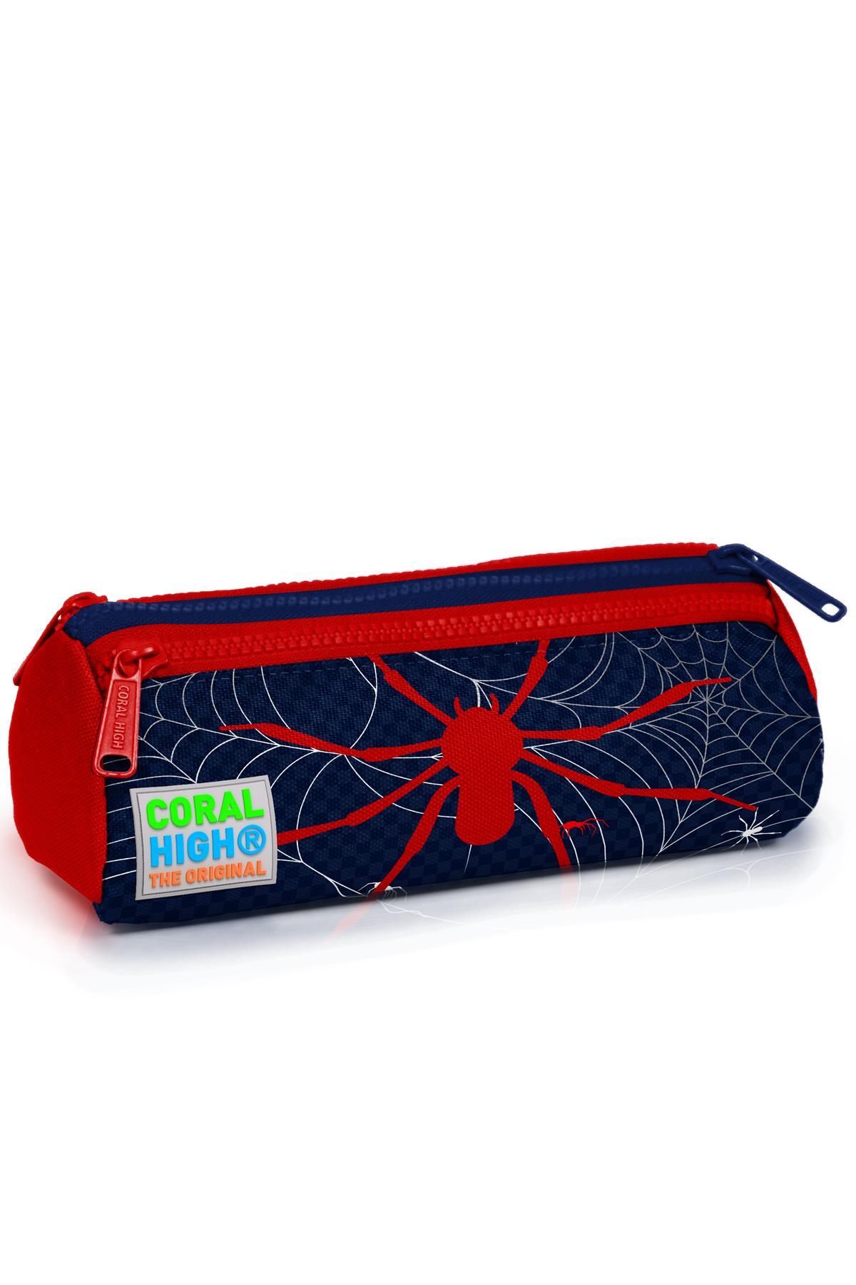 Coral High Kids Lacivert Kırmızı Örümcek Desenli Üç Bölmeli Kalem Çantası 22020