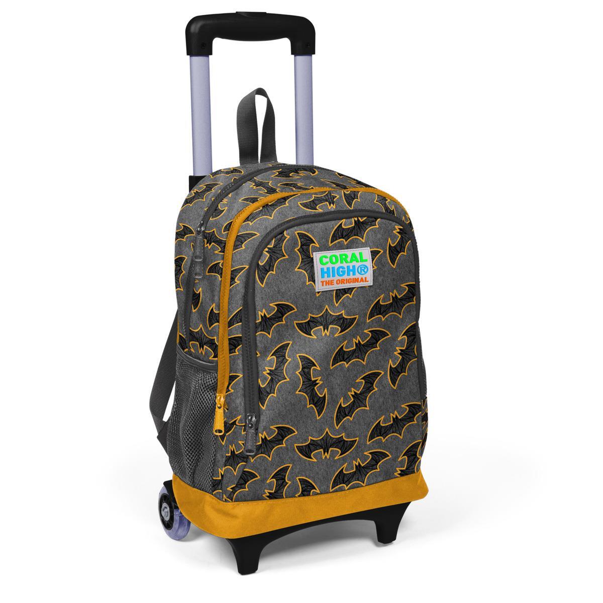 Coral High Kids Koyu Gri Hardal Yarasa Desenli Çekçekli 3'lü Çanta Seti SET0123921