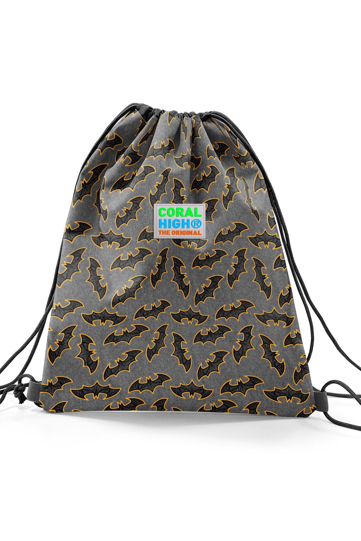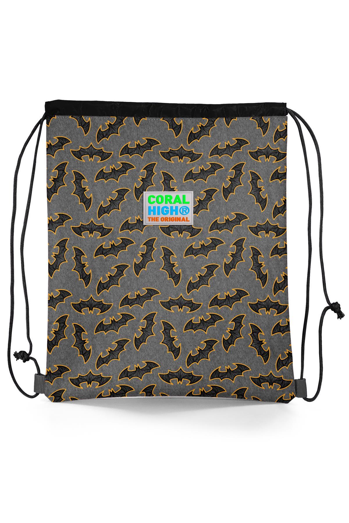 Coral High Kids Koyu Gri Hardal Yarasa Desenli İpli Büzgülü Sırt Çantası 22471