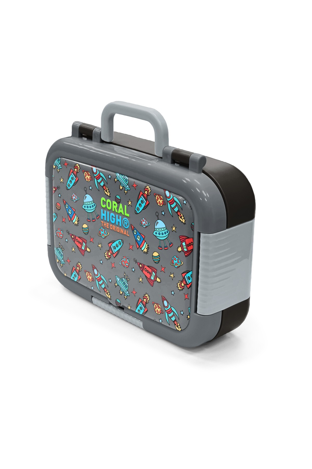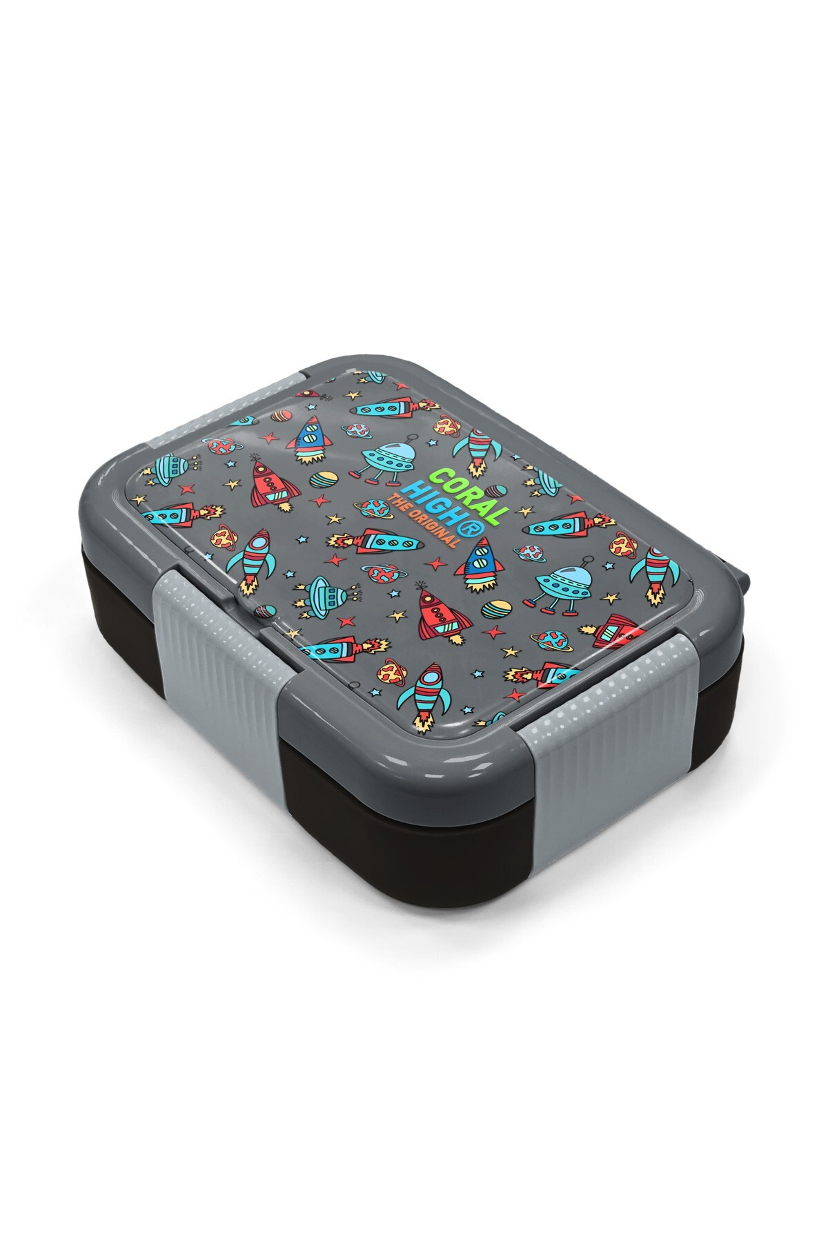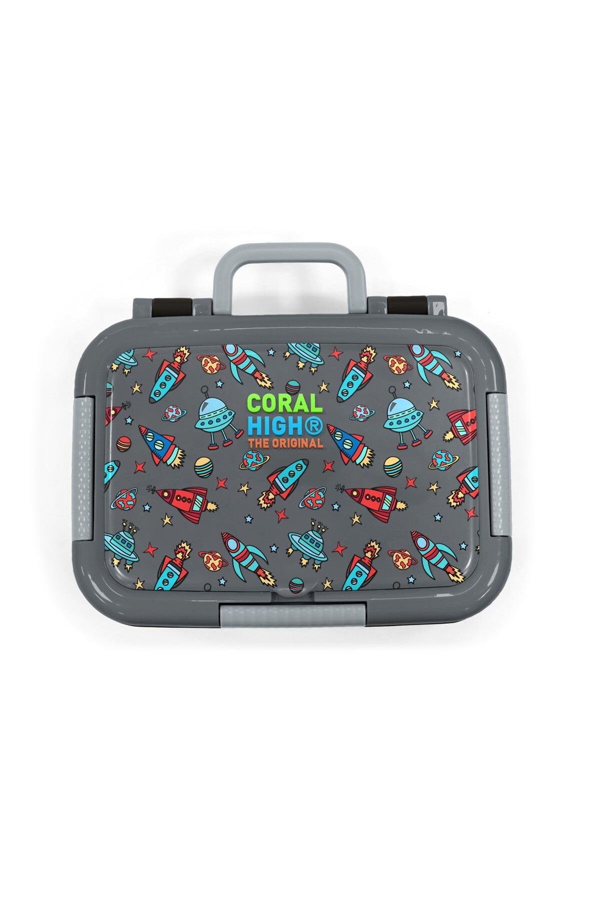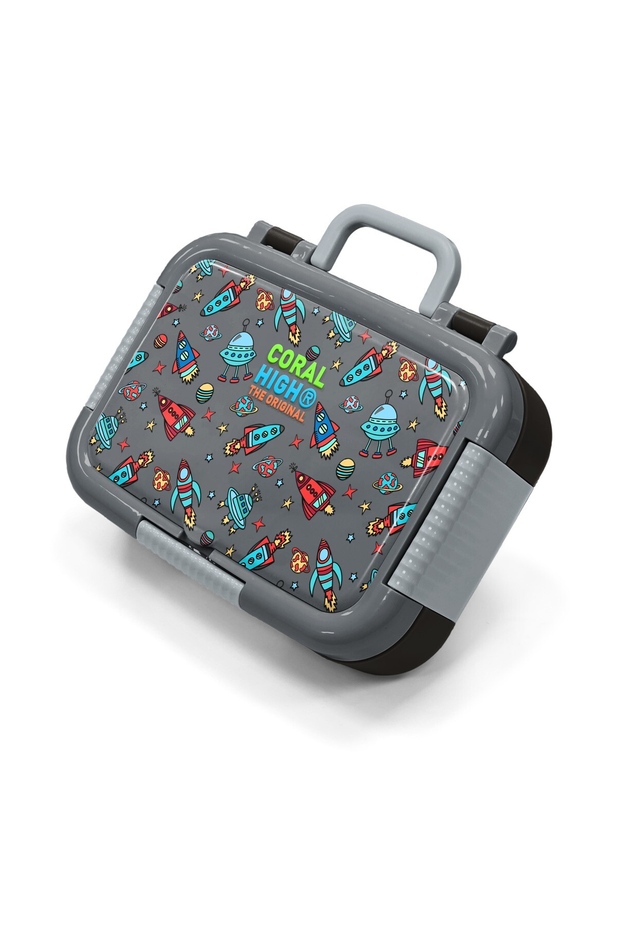Coral High Kids Koyu Gri Kırmızı Uzay Desenli Paslanmaz Çelik Beslenme Kabı 39220