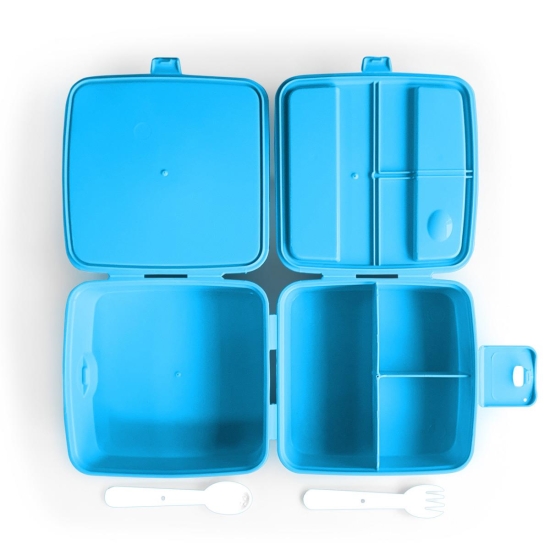 Coral High Kids Mavi Dinozor Desenli Dört Bölmeli Çatal ve Kaşıklı Beslenme Kabı 32997