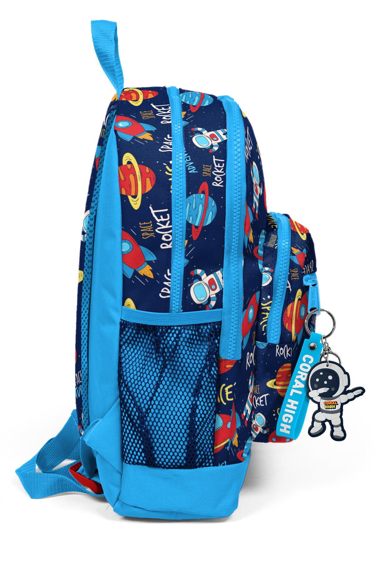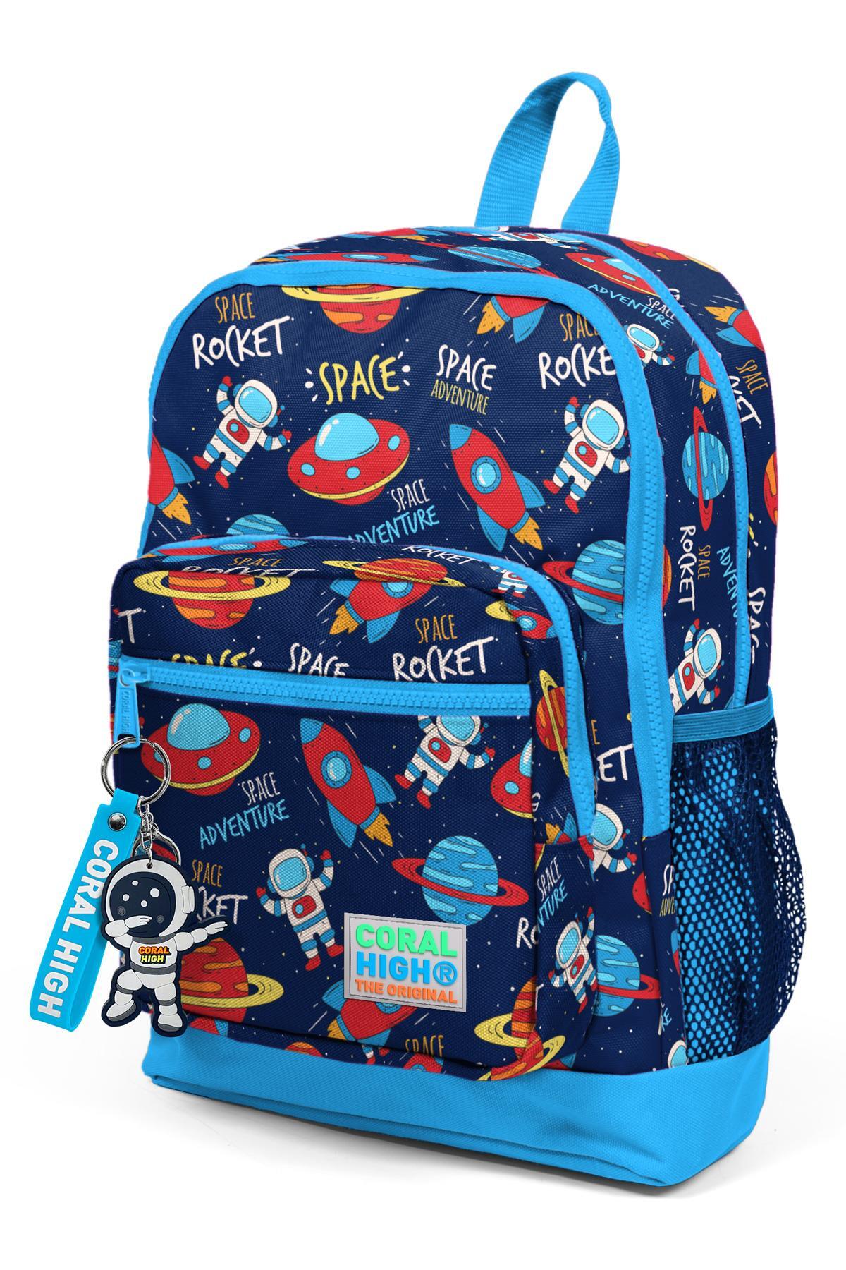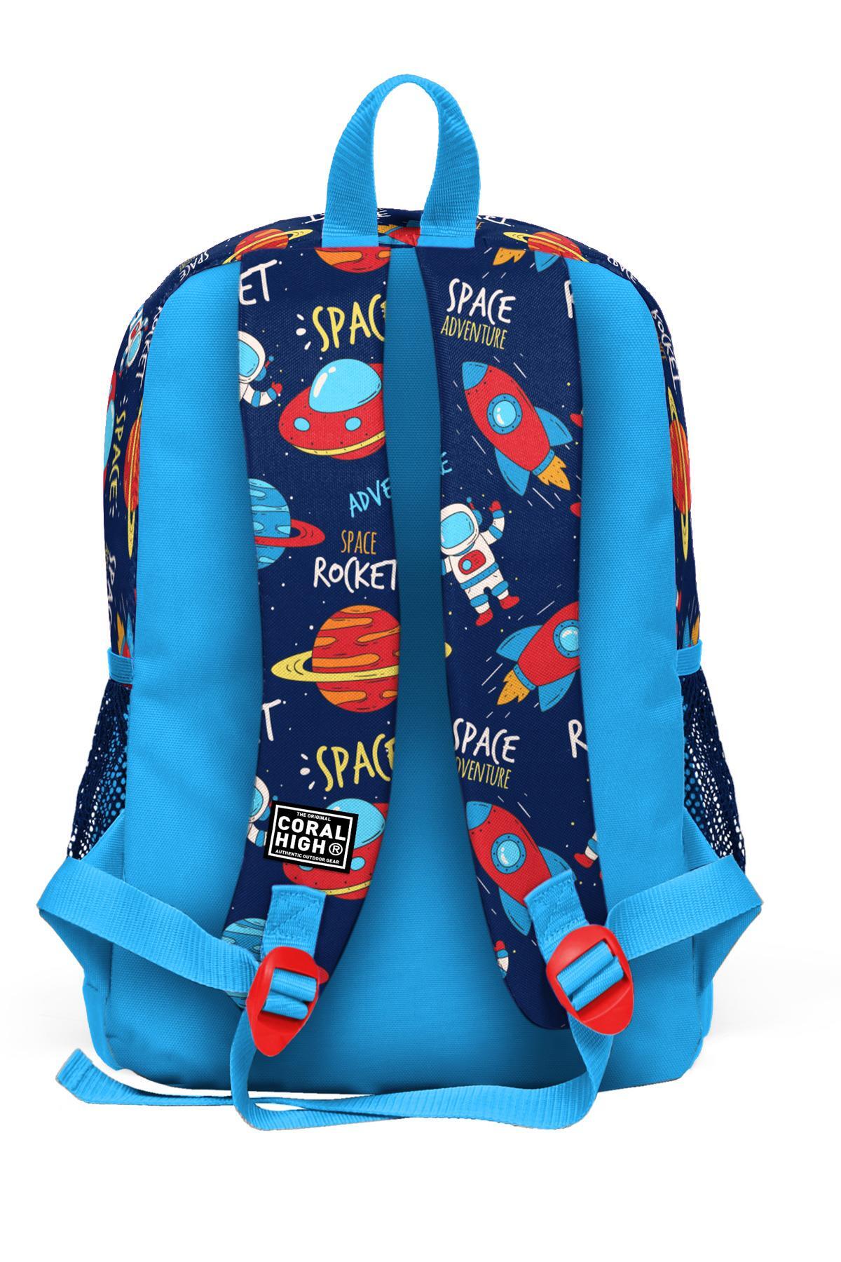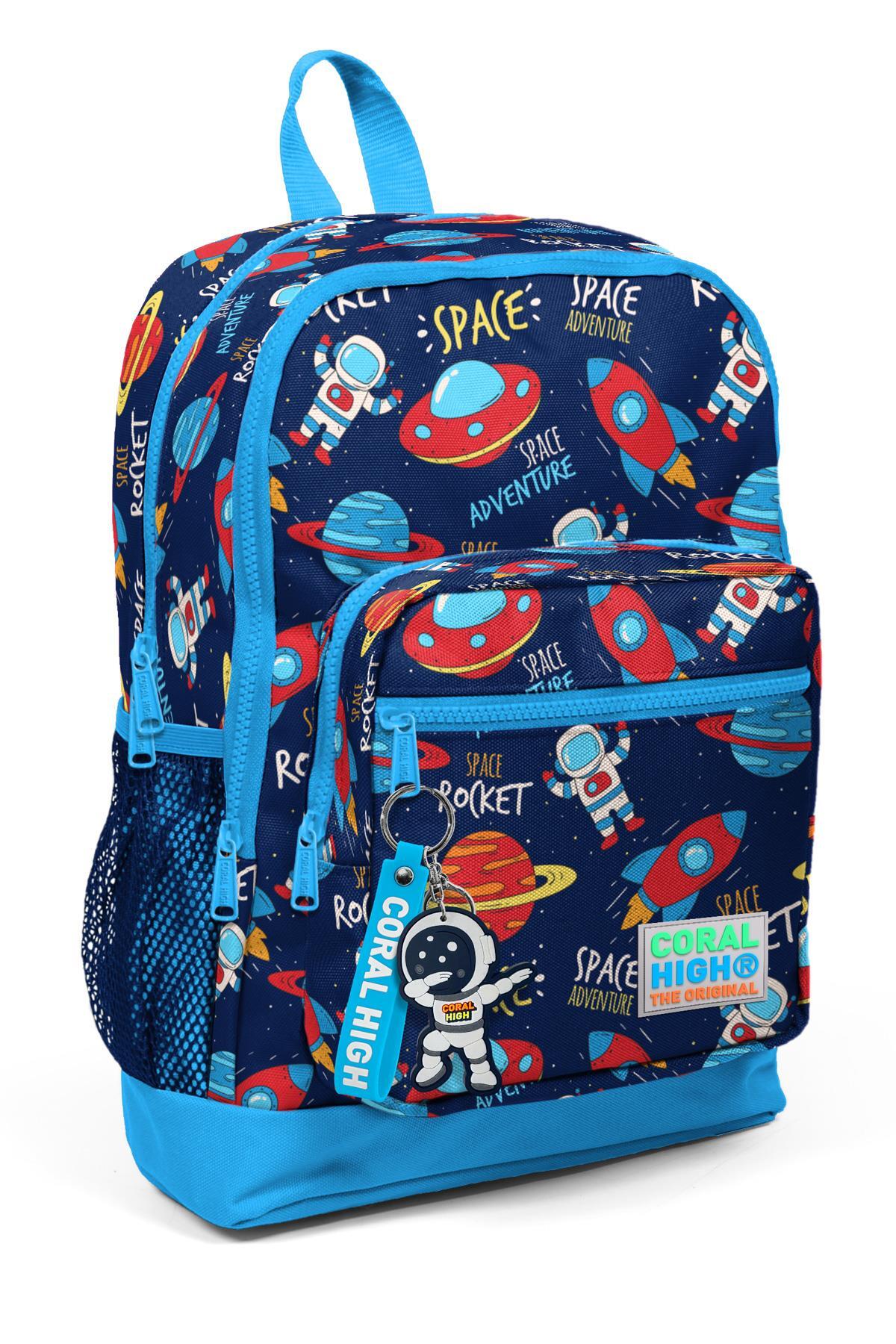 Coral High Kids Lacivert Mavi Uzay Desenli Dört Bölmeli Okul Sırt Çantası 23470