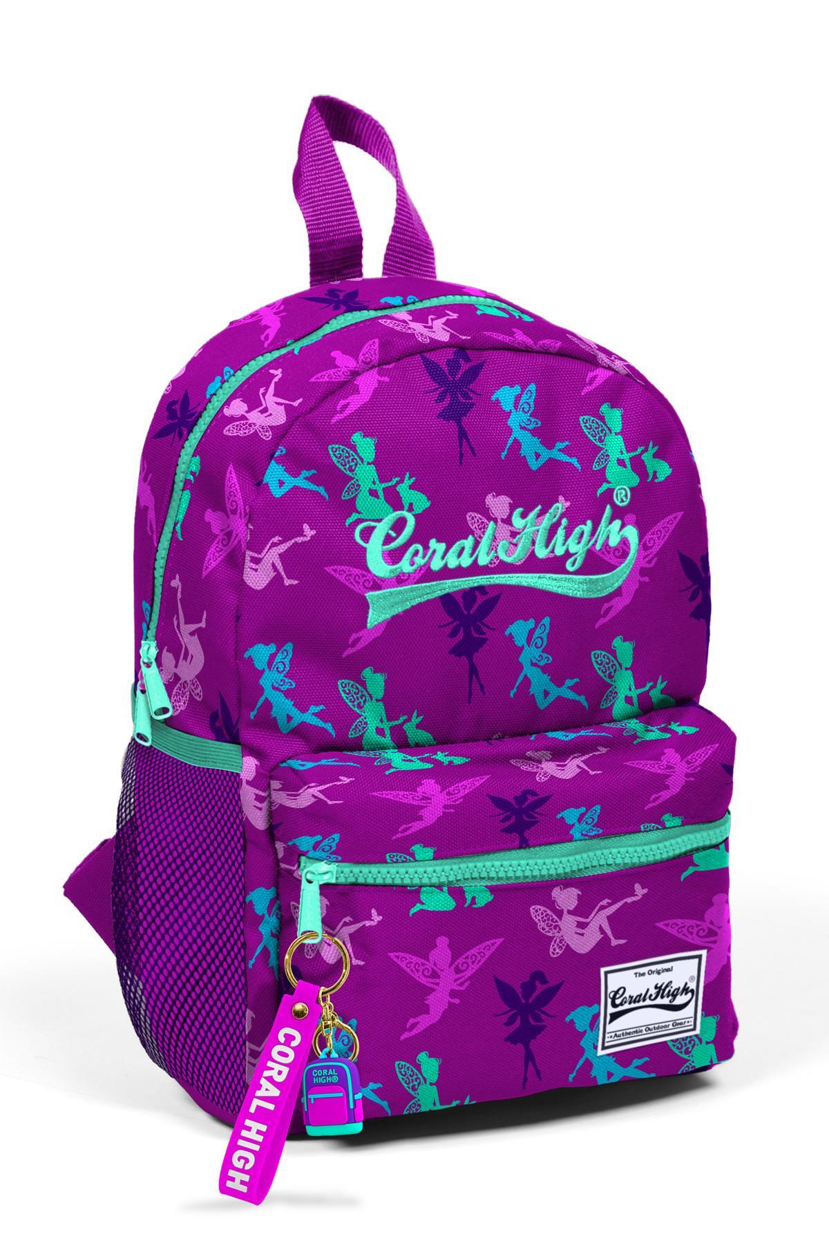 Minik Yuva Sırt Çantası Koyu Pembe Su Yeşili Peri Desenli İki Bölmeli 23149