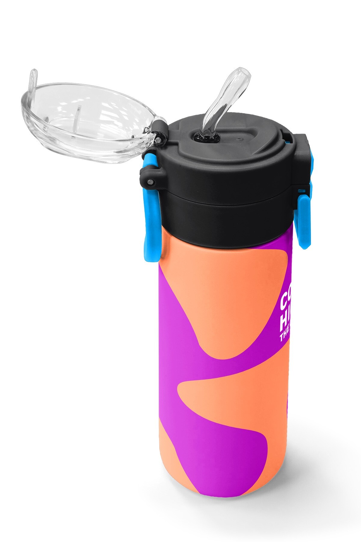 Coral High Kids Koyu Pembe Turuncu Desenli Pipetli ve Direkt İçim Çelik Termos 500 ml 31884