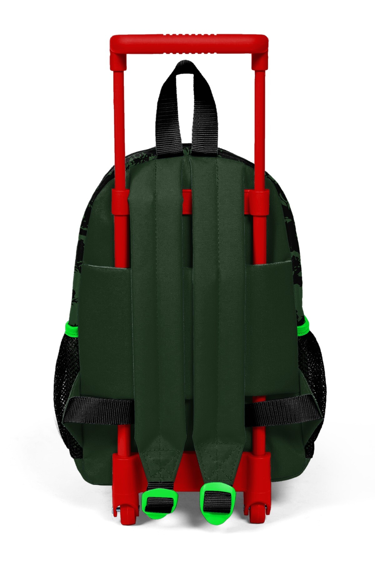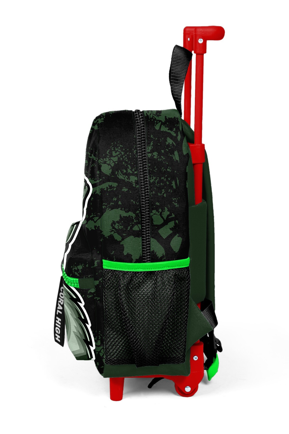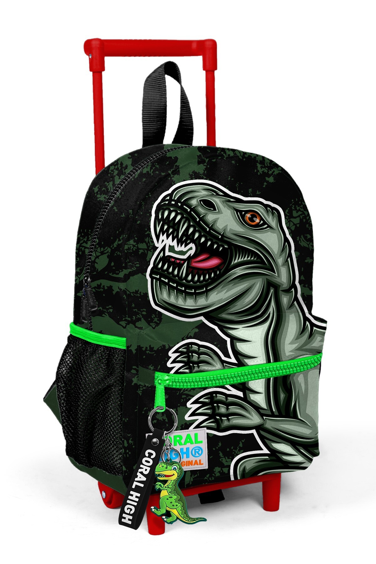 Minik Yuva Çekçekli Sırt Çantası Koyu Yeşil Siyah Dinozor Desenli İki Bölmeli 24019