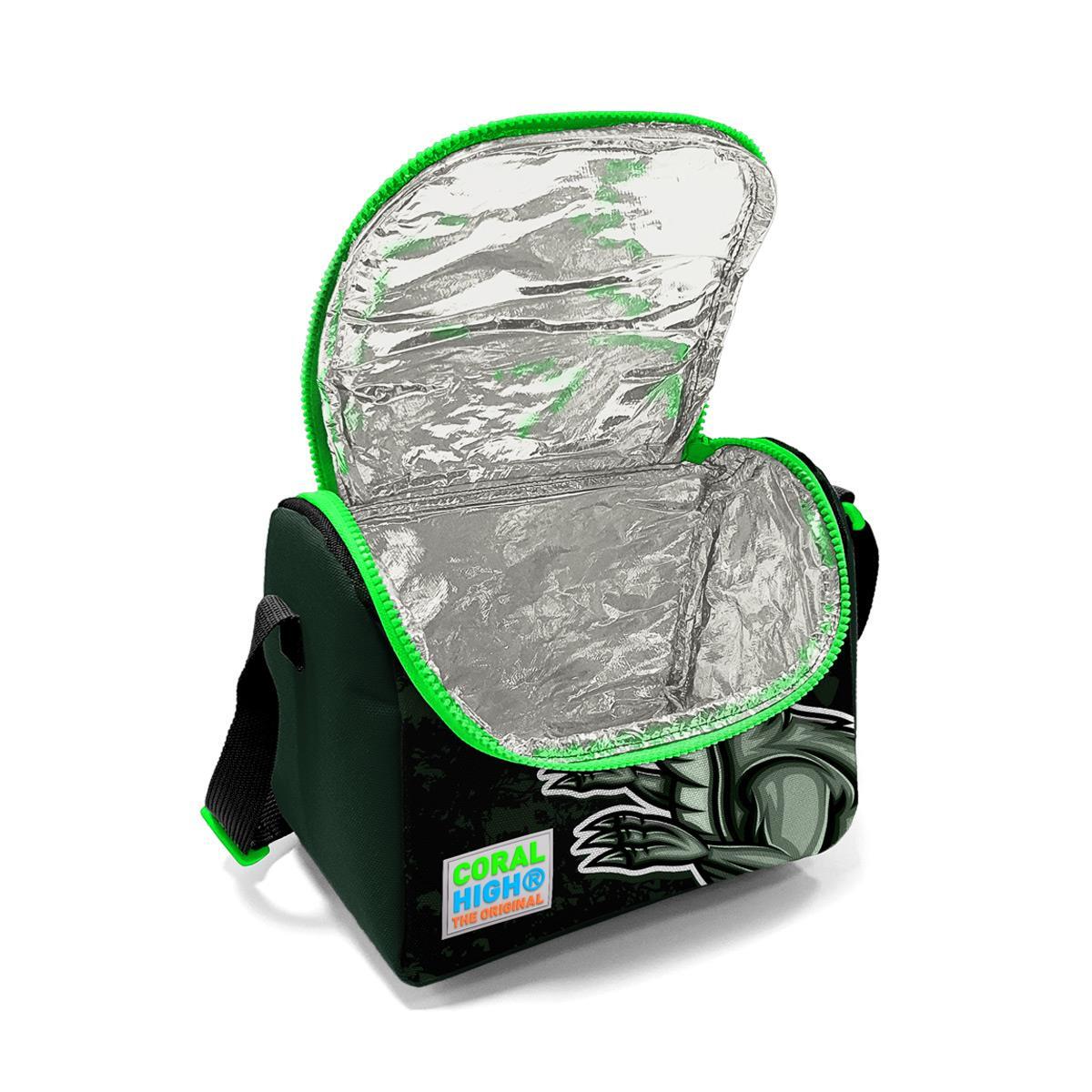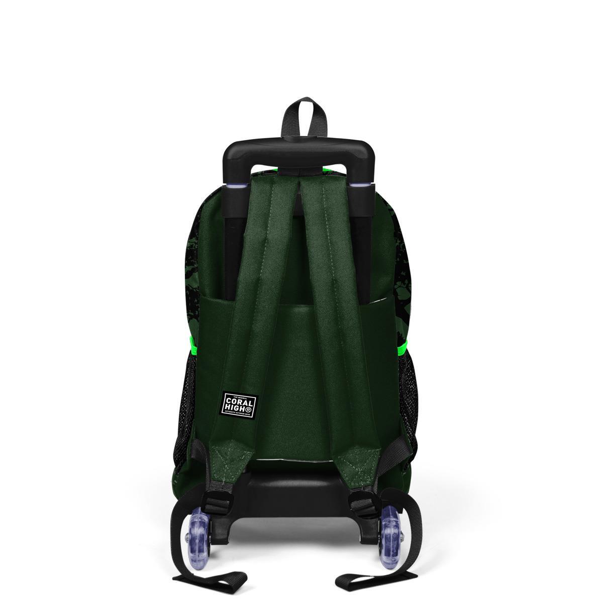 Coral High Kids Koyu Yeşil Siyah Dinozor Desenli Çekçekli 3'lü Çanta Seti SET0123925