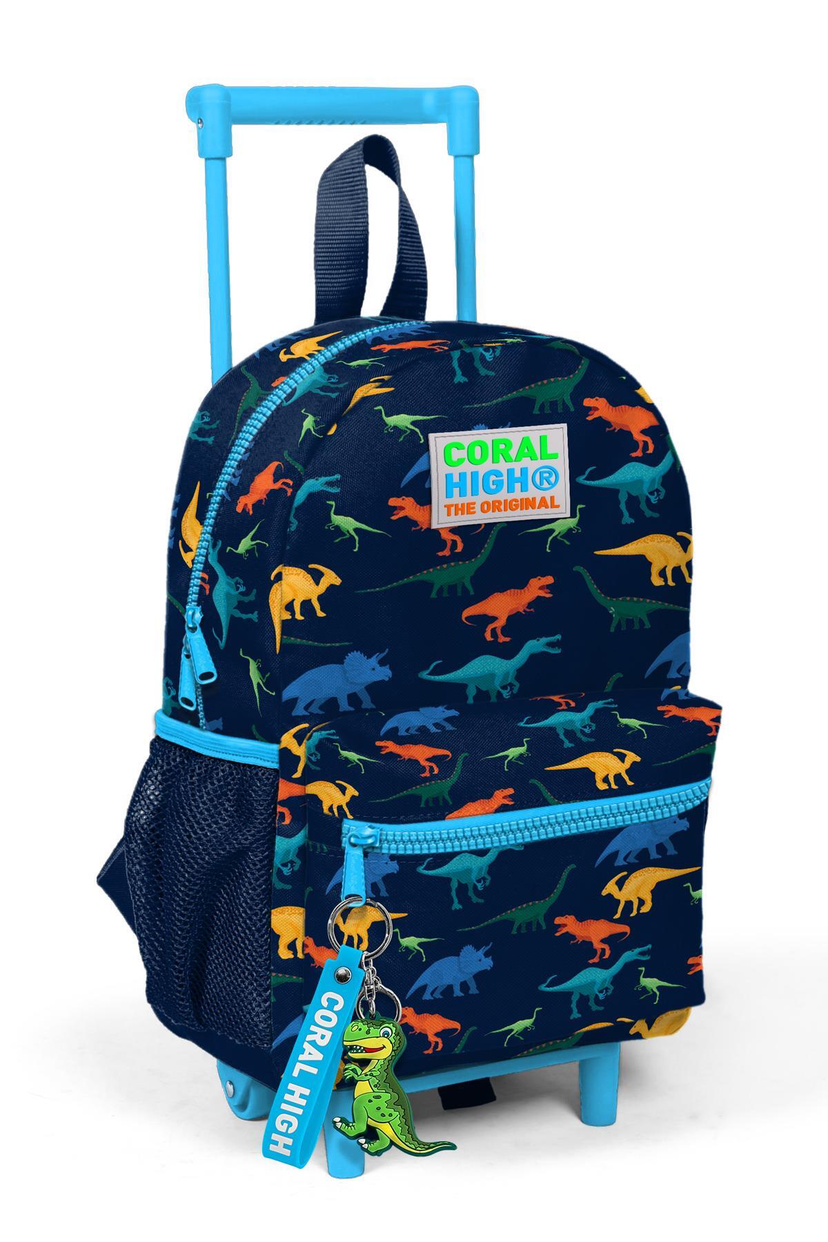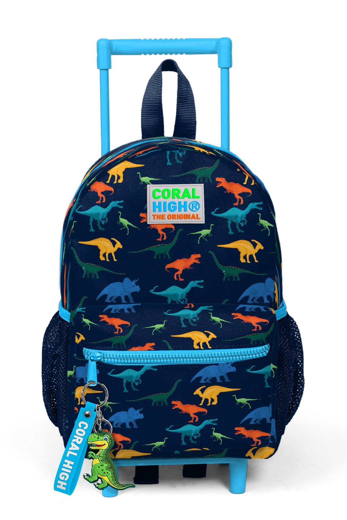 Minik Yuva Çekçekli Sırt Çantası Lacivert Mavi Dinozor Desenli İki Bölmeli 24014