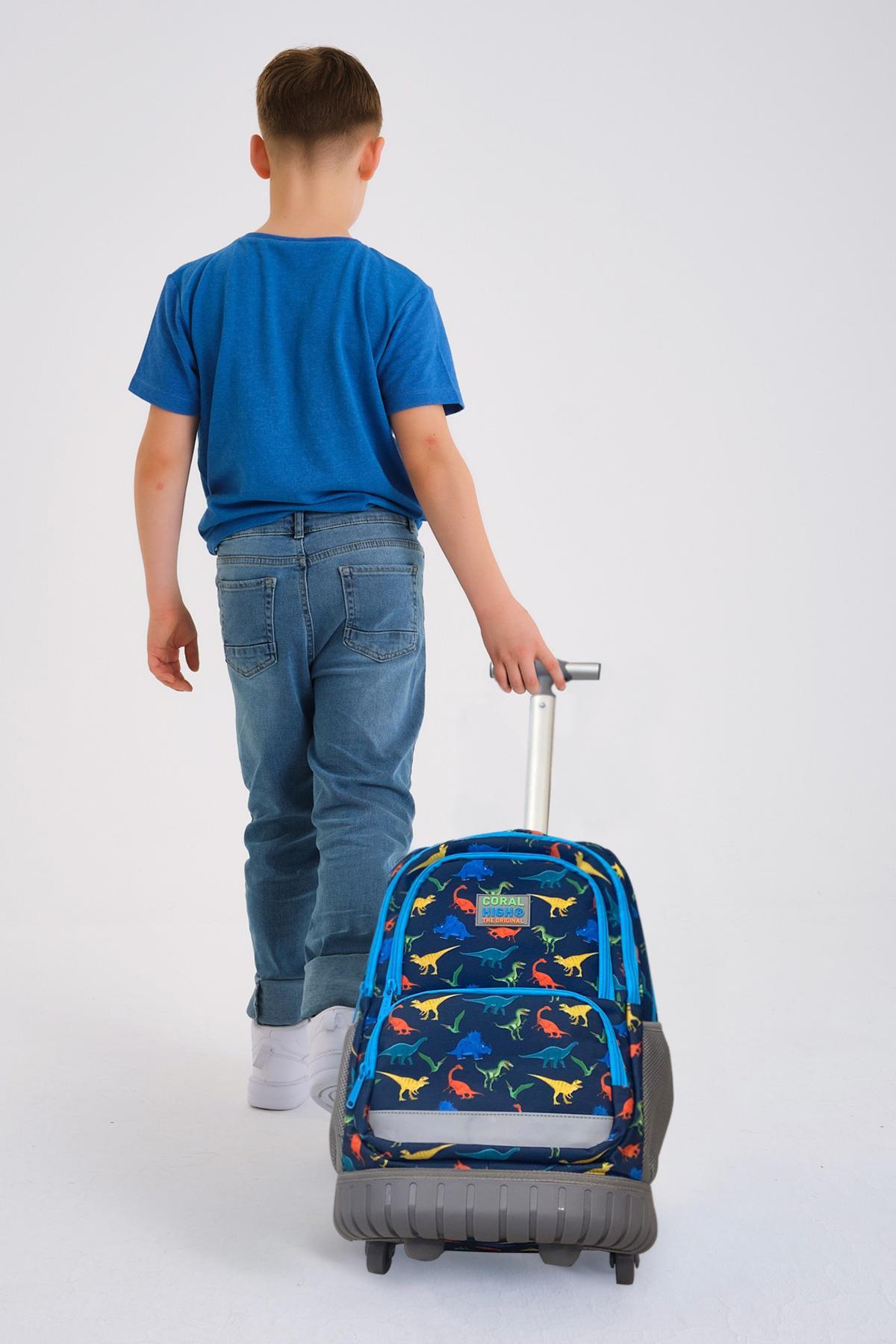 Modern renk ve desenlerle tasarlanmıştır. Dört Bölmeli çekçekli okul ve sırt çantası. Çantanın ana gözü daha sağlam ve güvenli olması için çift fermuar sürgüsüne sahiptir. Çantanın üst kısmında, alt kısmı hava alabilen bir kumaştan ve için ergonomik süngerden oluşturulmuş elde tutma kulbu vardır. Omuz askıları ağırlığı absorbe edecek şekilde konforlu bir kullanım sağlayacak köpük ve yumuşak malzemelerden üretilmiştir..