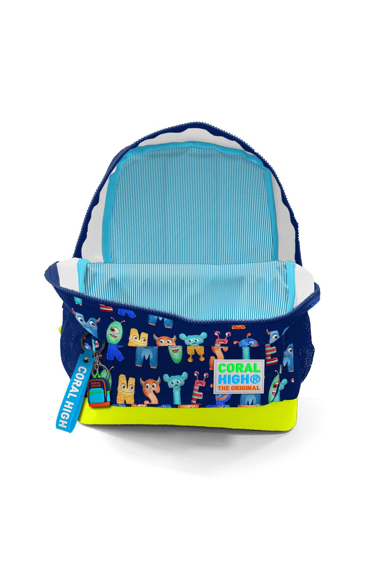 Coral High Kids Lacivert Neon Sarı Monster Desenli İki Bölmeli Okul Sırt Çantası 23626