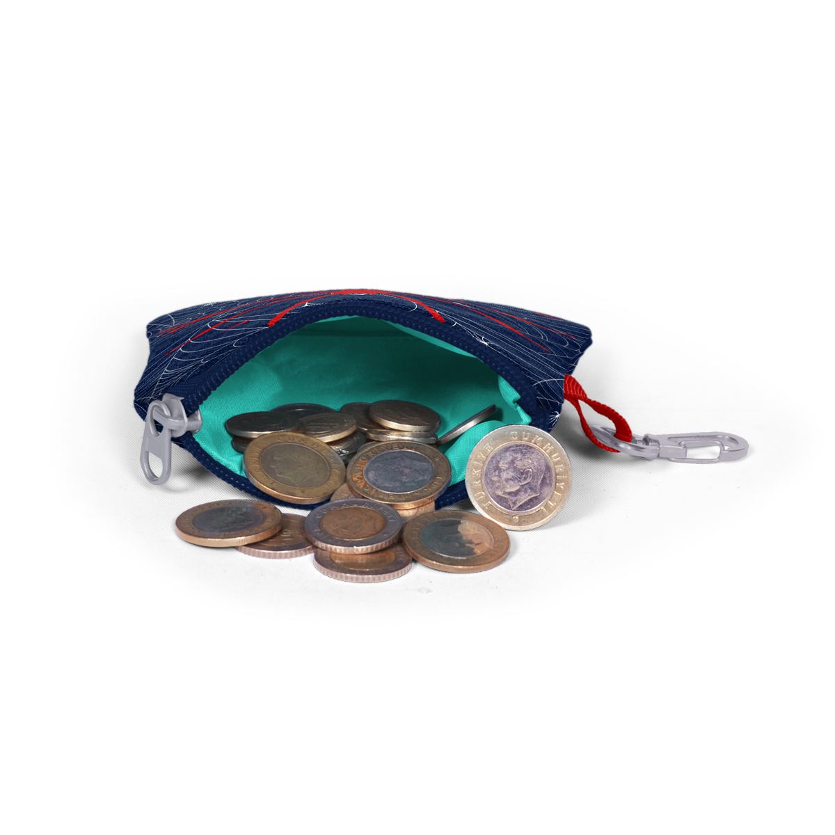 Tek bölmeli, fermuarlı bozuk para cüzdanı.