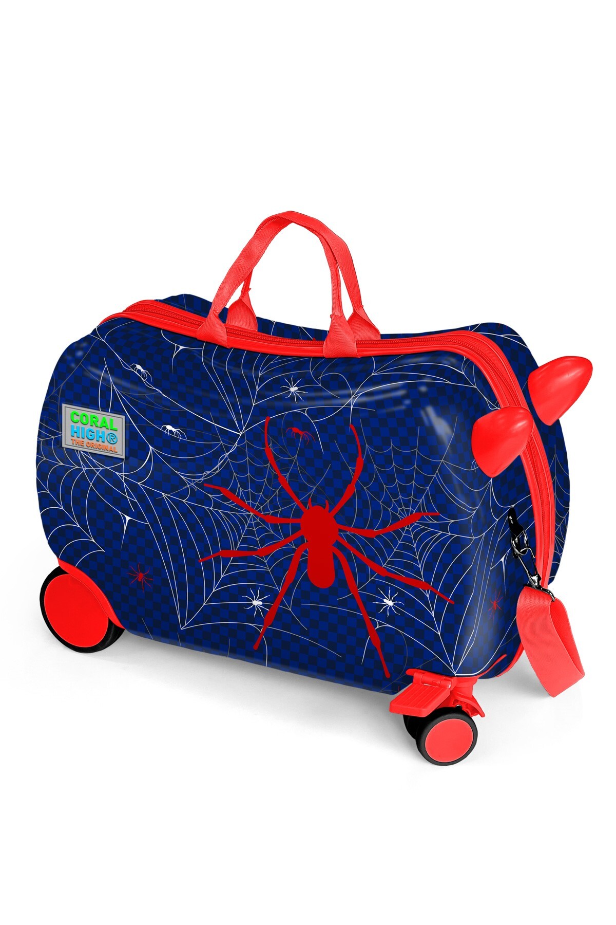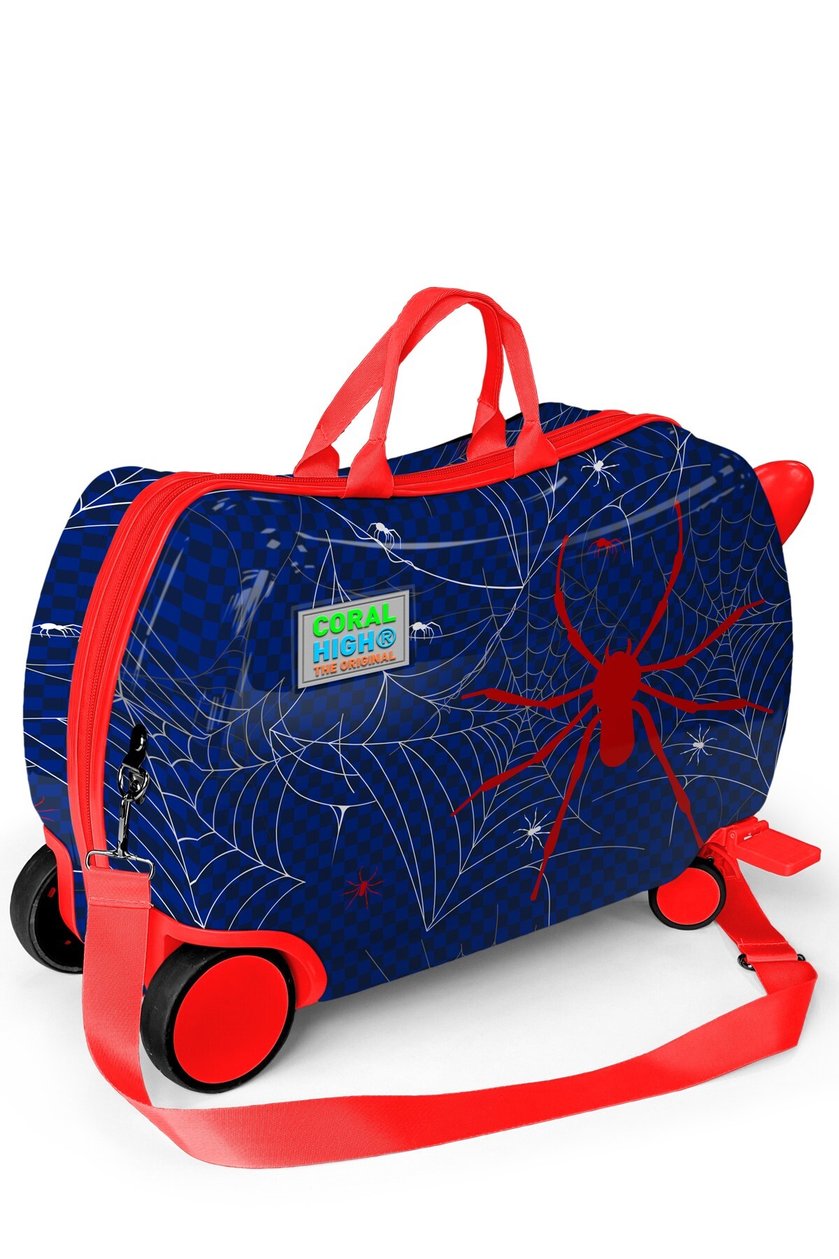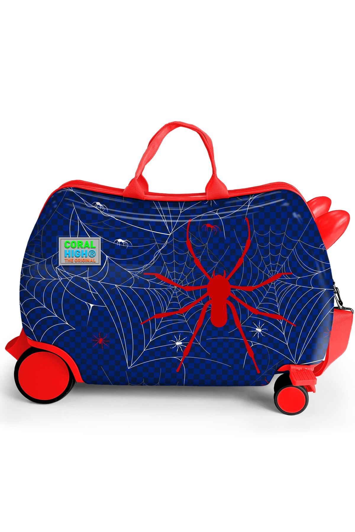 Coral High Kids Lacivert Kırmızı Örümcek Desenli Otur-Çek Çocuk Valizi 16367
