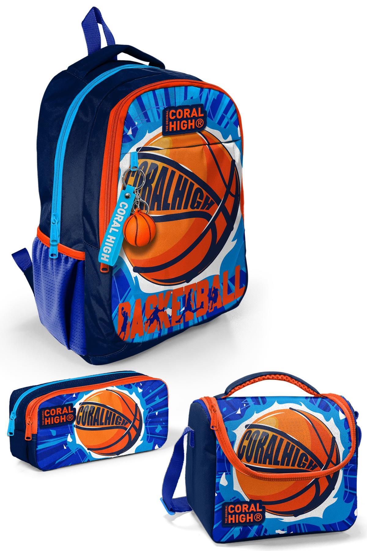 Coral High Kids Lacivert Mavi Basketbol Desenli 3’lü Okul Çanta Seti SET0114405