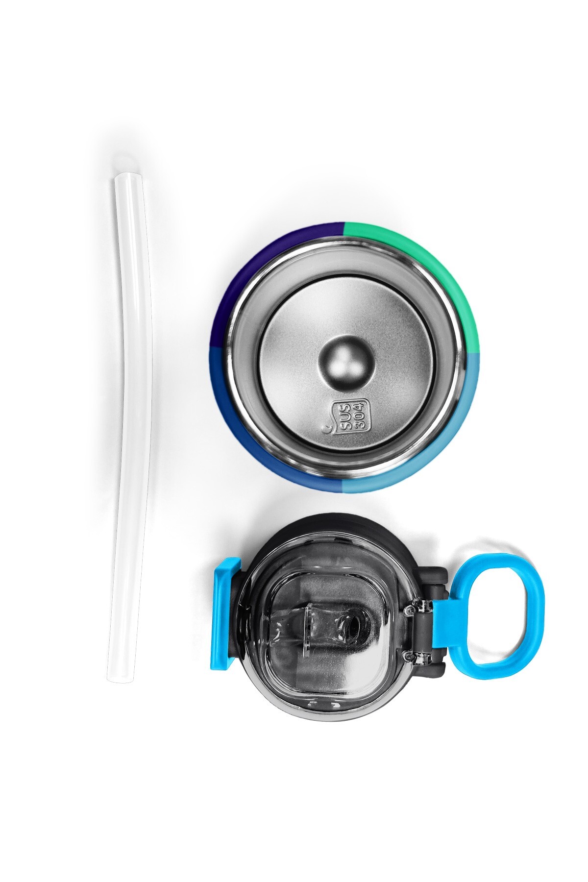 Coral High Kids Lacivert Mavi Çizgili Pipetli ve Direkt İçim Çelik Termos 500 ml 31997