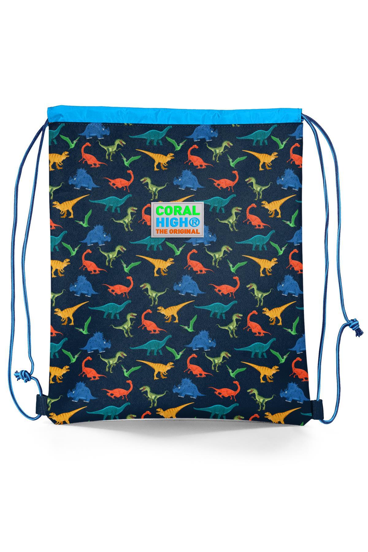 Coral High Kids Lacivert Mavi Dinozor Desenli İpli Büzgülü Sırt Çantası 22452