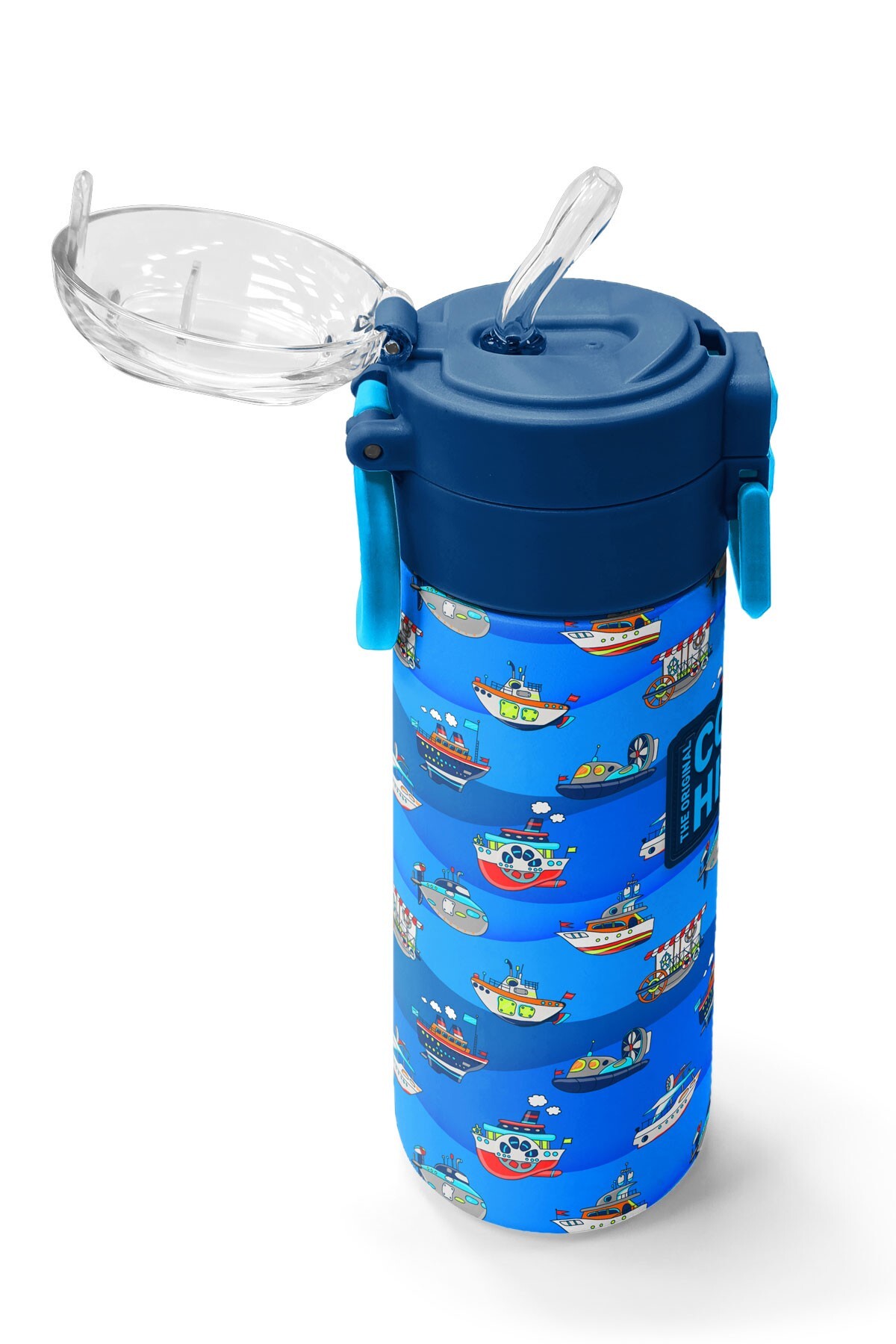 Coral High Kids Lacivert Mavi Gemi Desenli Pipetli ve Direkt İçim Çelik Termos 500 ml 31973