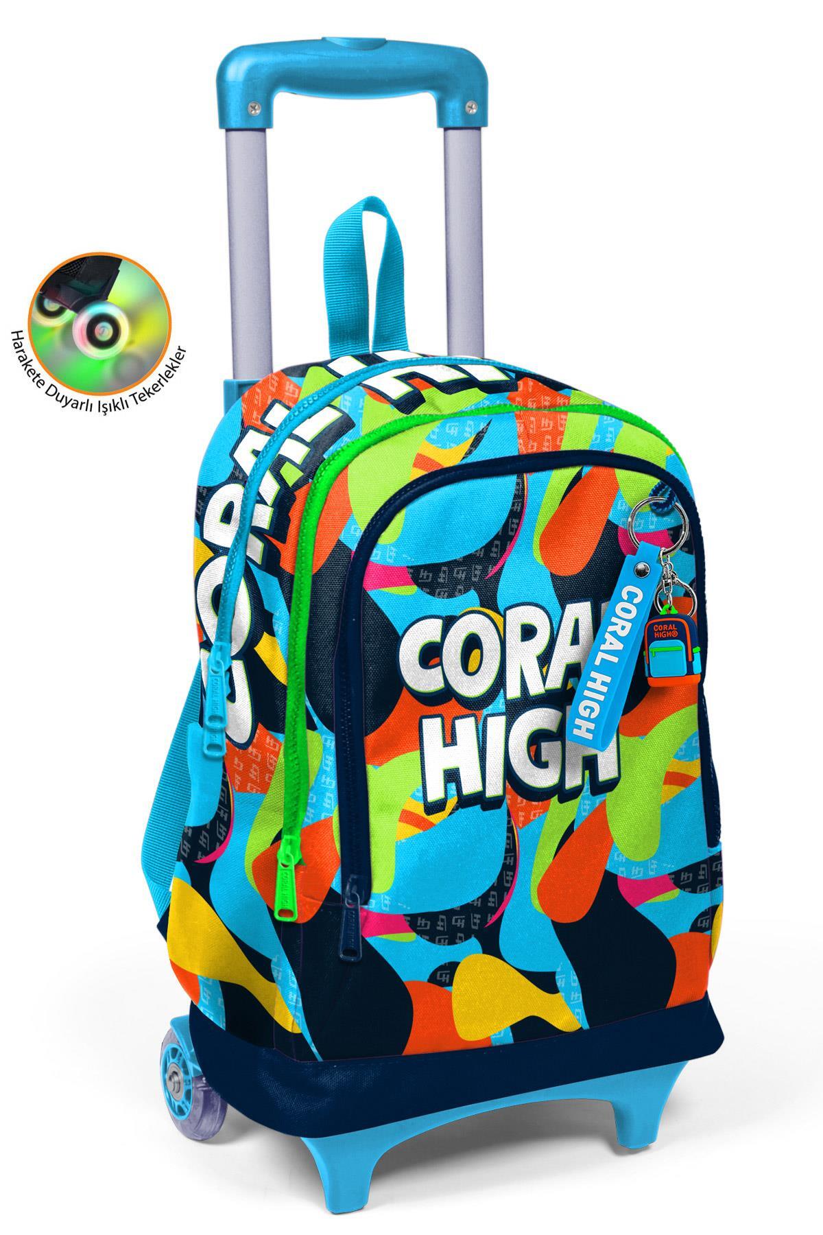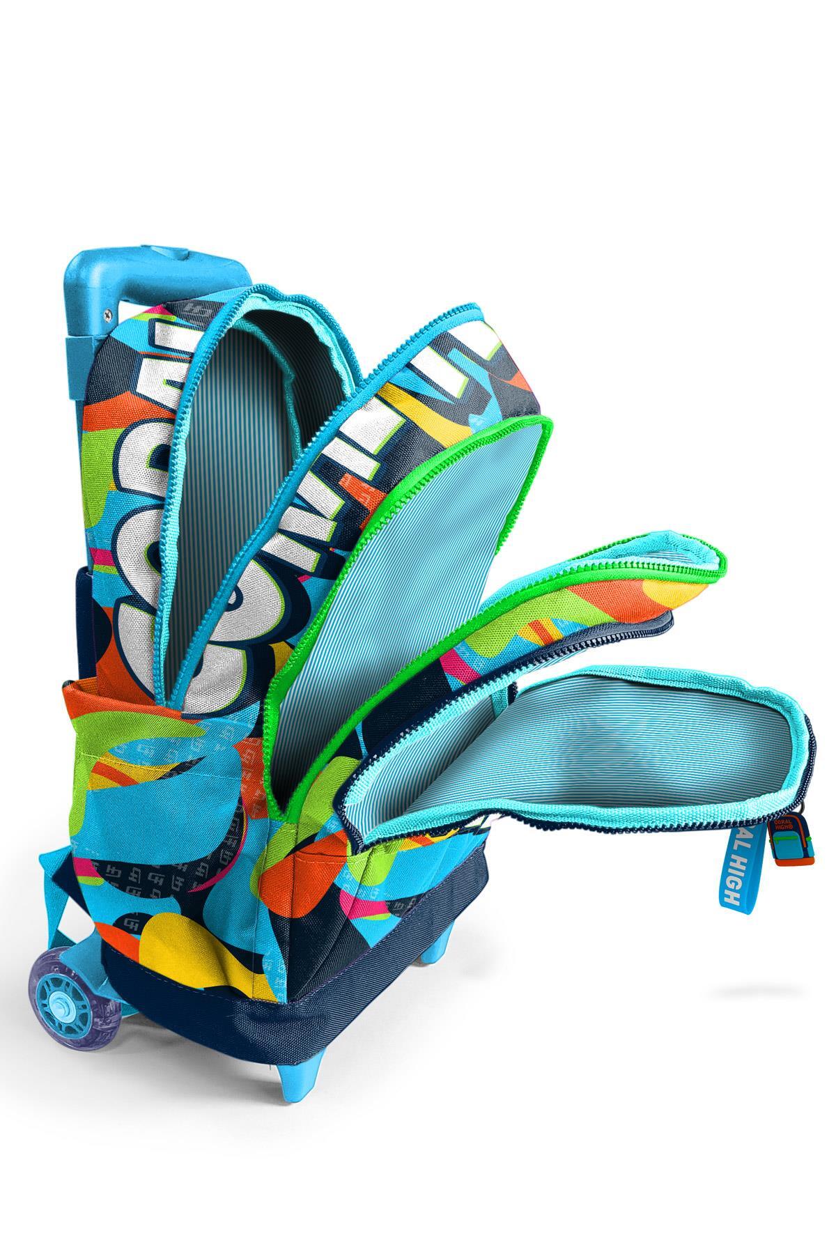 Coral High Kids Lacivert Mavi Graffiti Desenli Üç Bölmeli Çekçekli Okul Sırt Çantası 23977