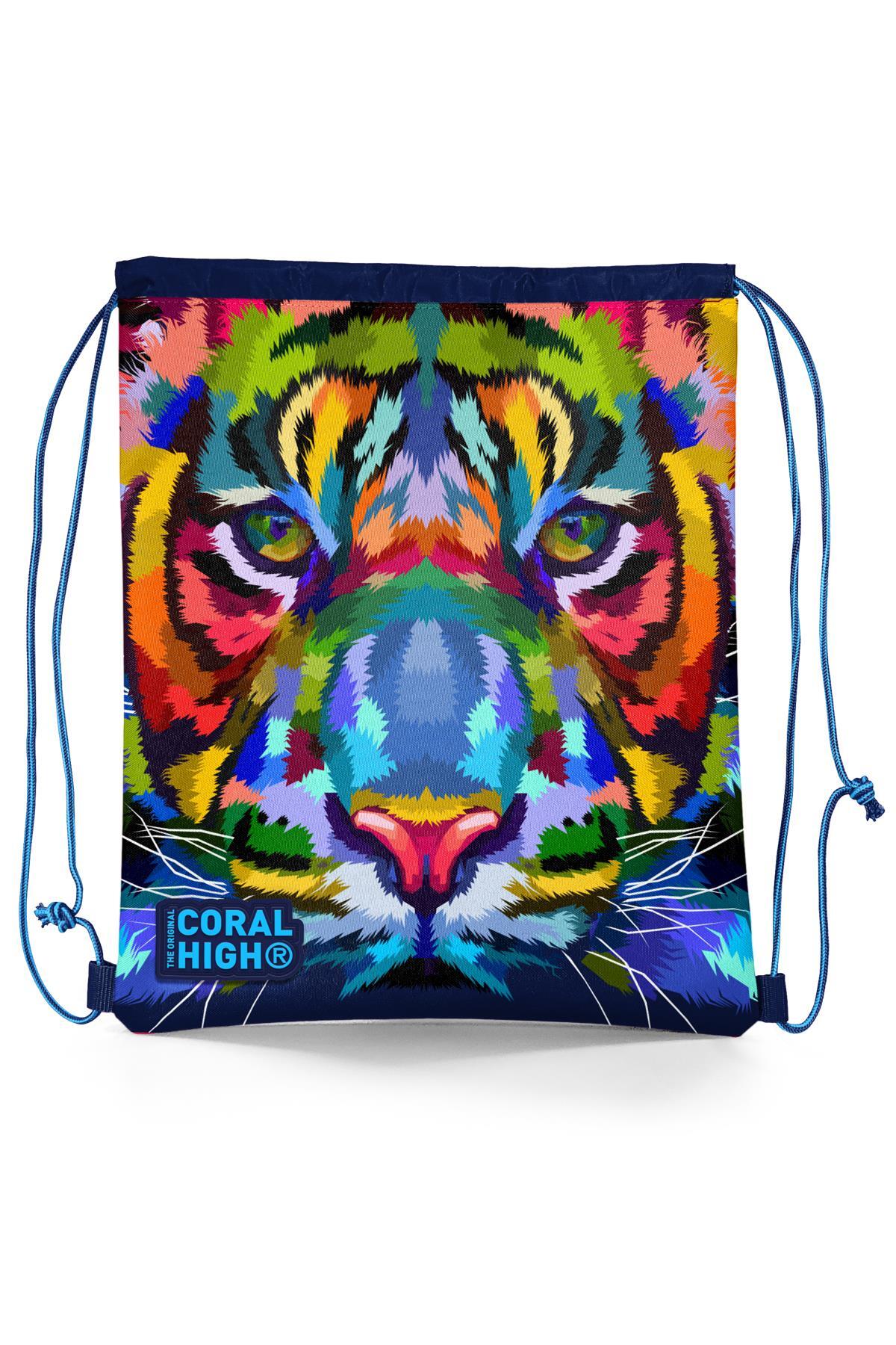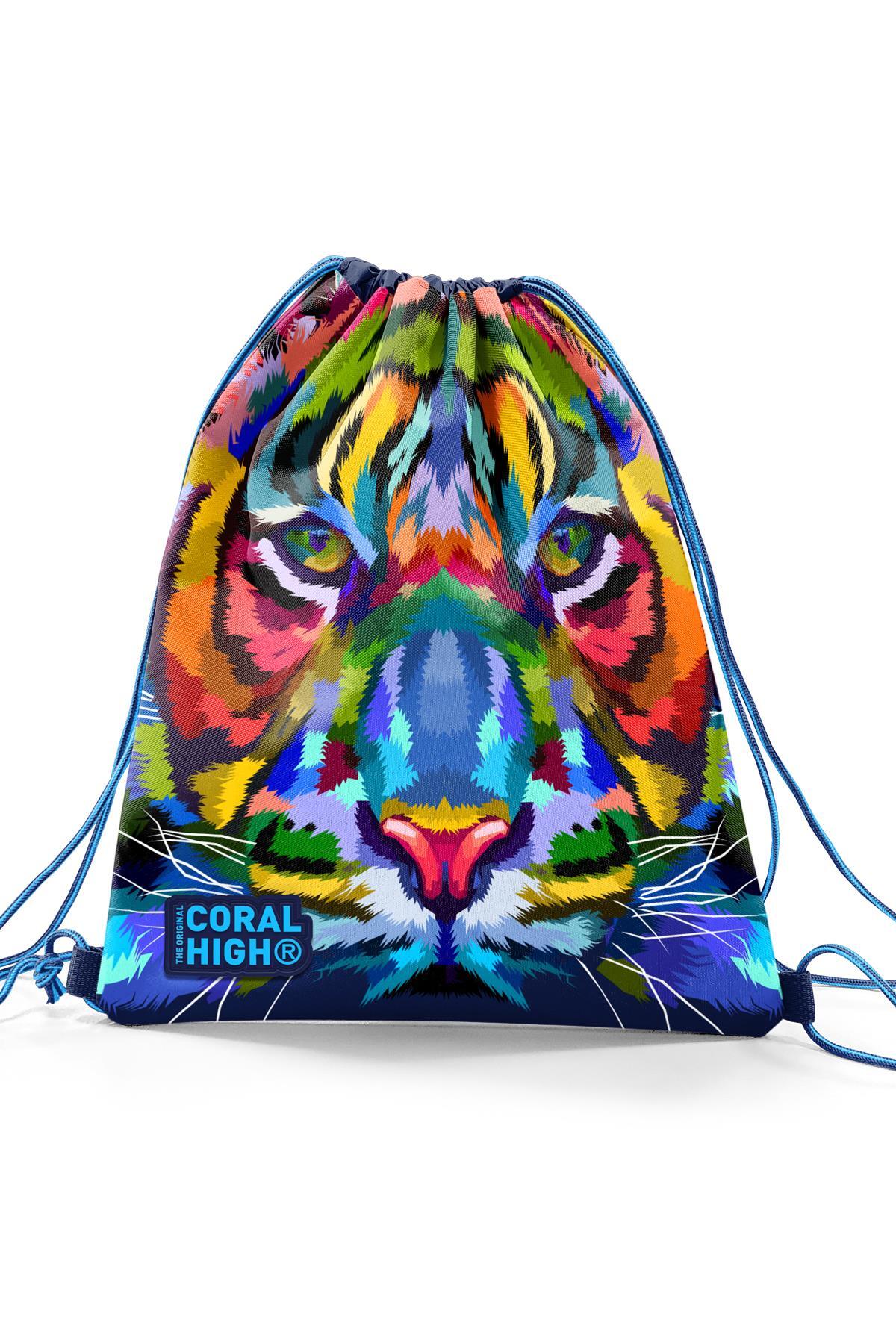 Coral High Kids Lacivert Mavi Kaplan Desenli İpli Büzgülü Sırt Çantası 22688