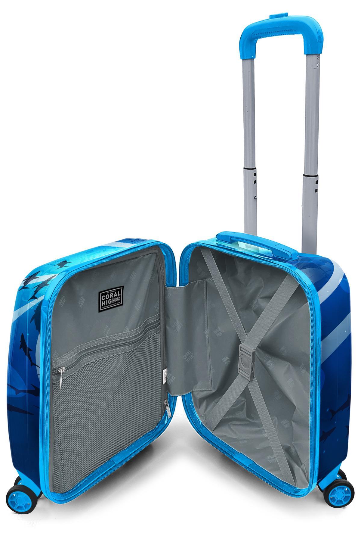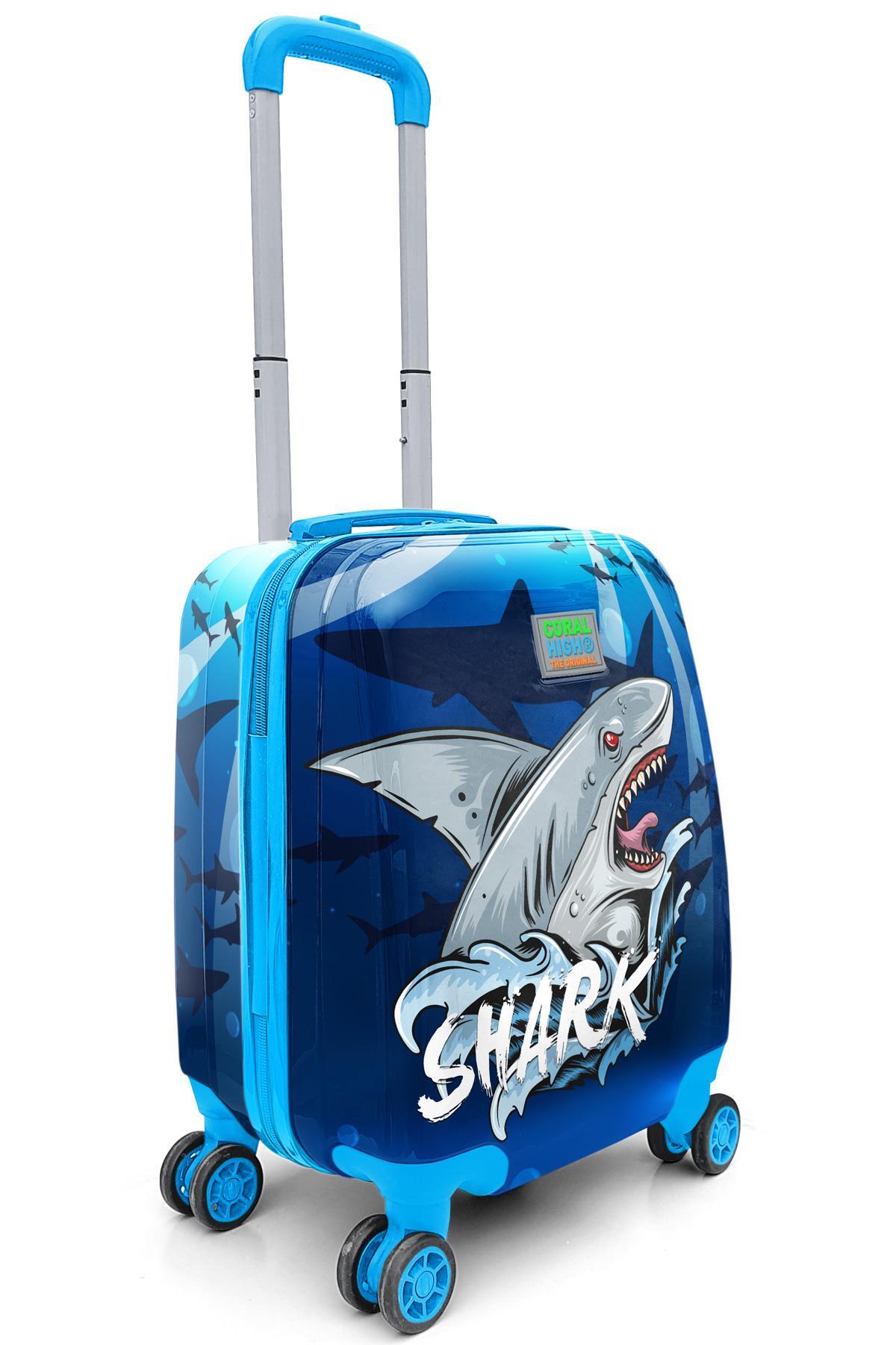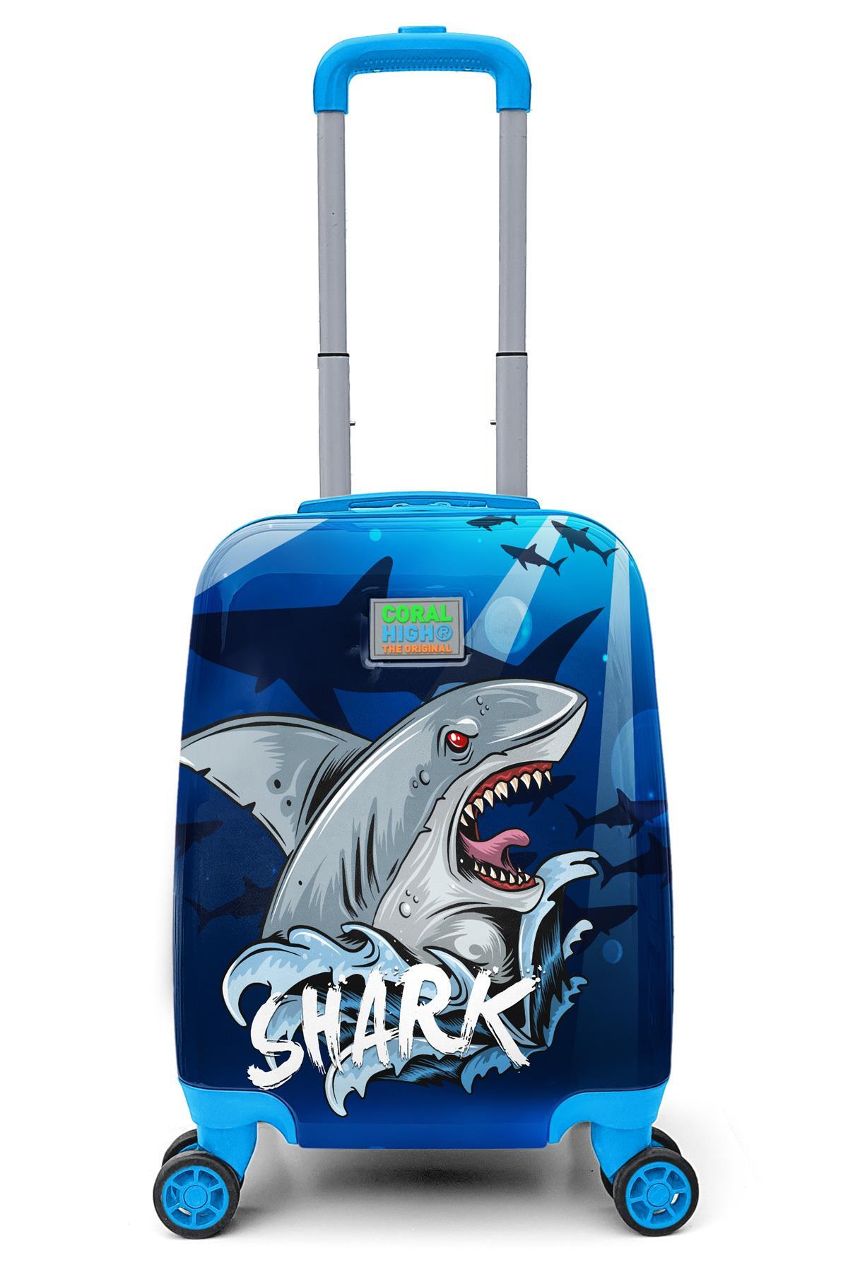 Coral High Kids Lacivert Mavi Köpek Balığı Desenli Çocuk Valizi 16741