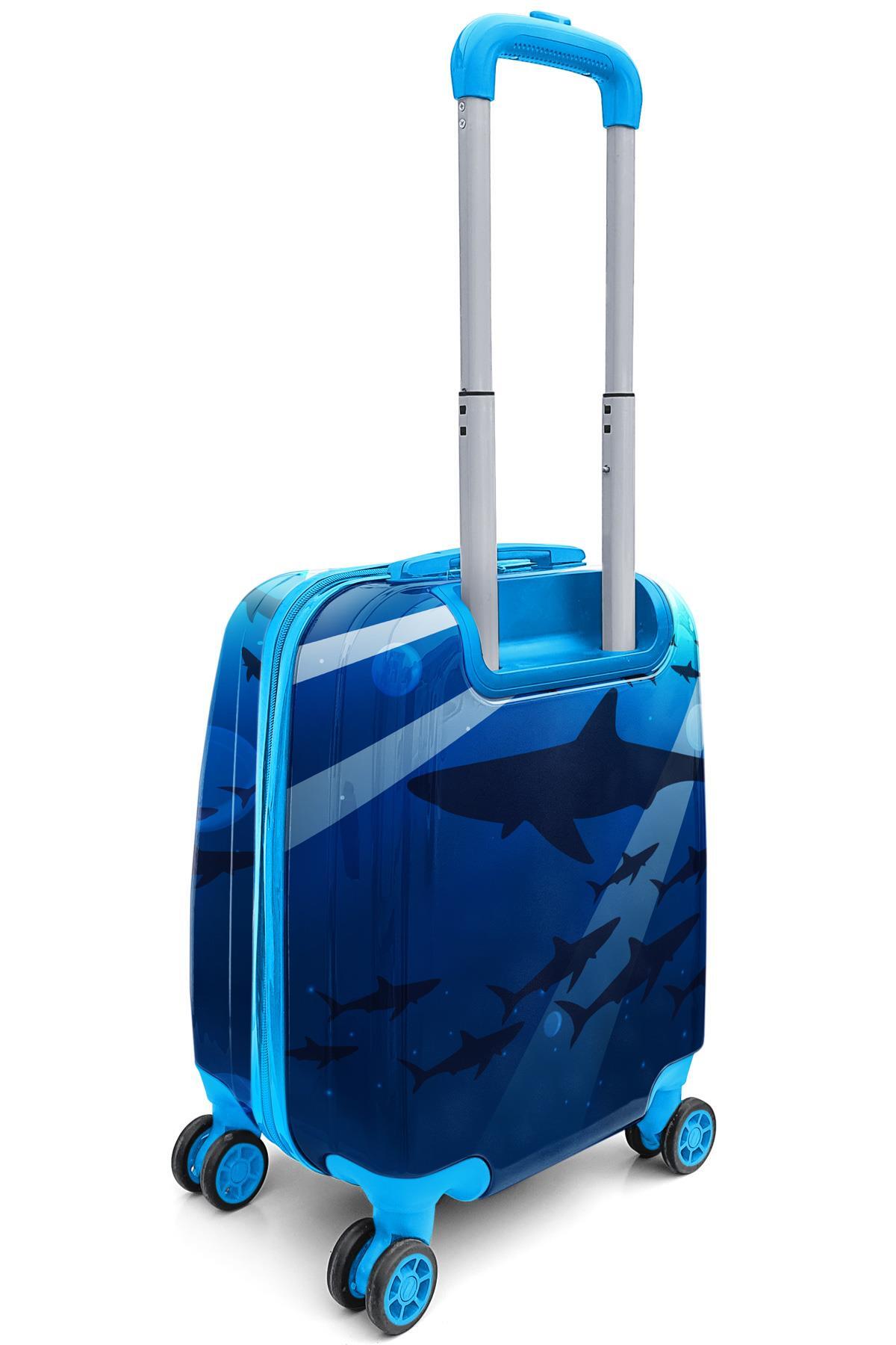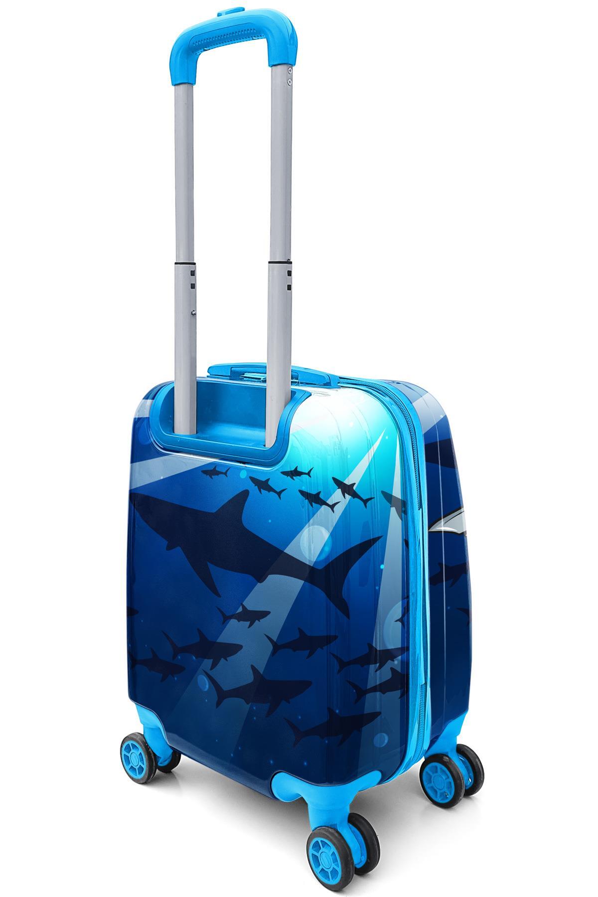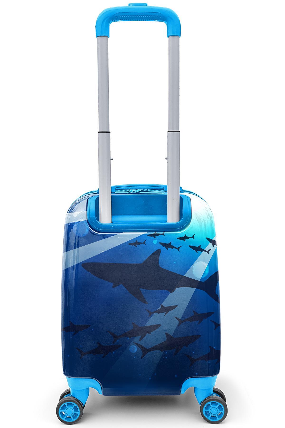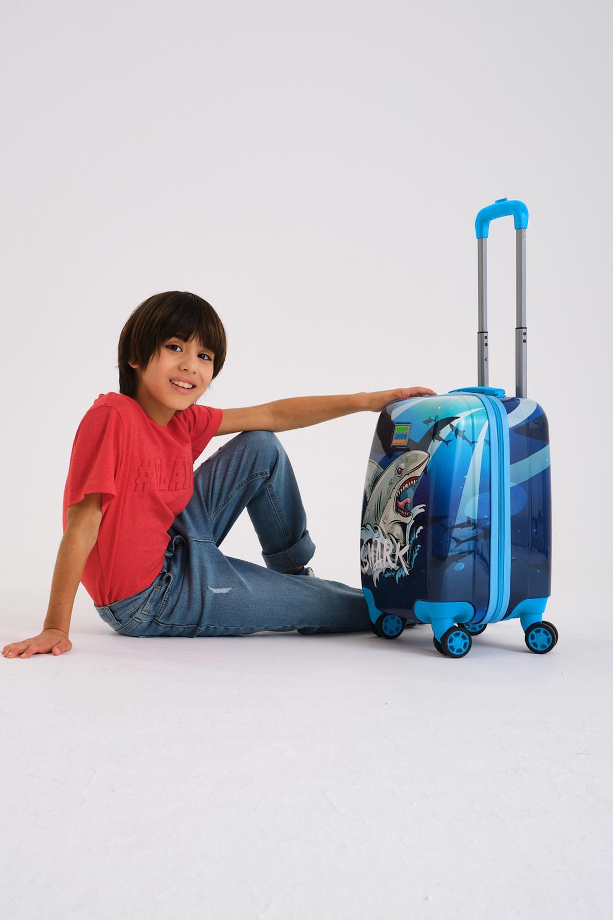 Coral High Kids Lacivert Mavi Köpek Balığı Desenli Çocuk Valizi 16741