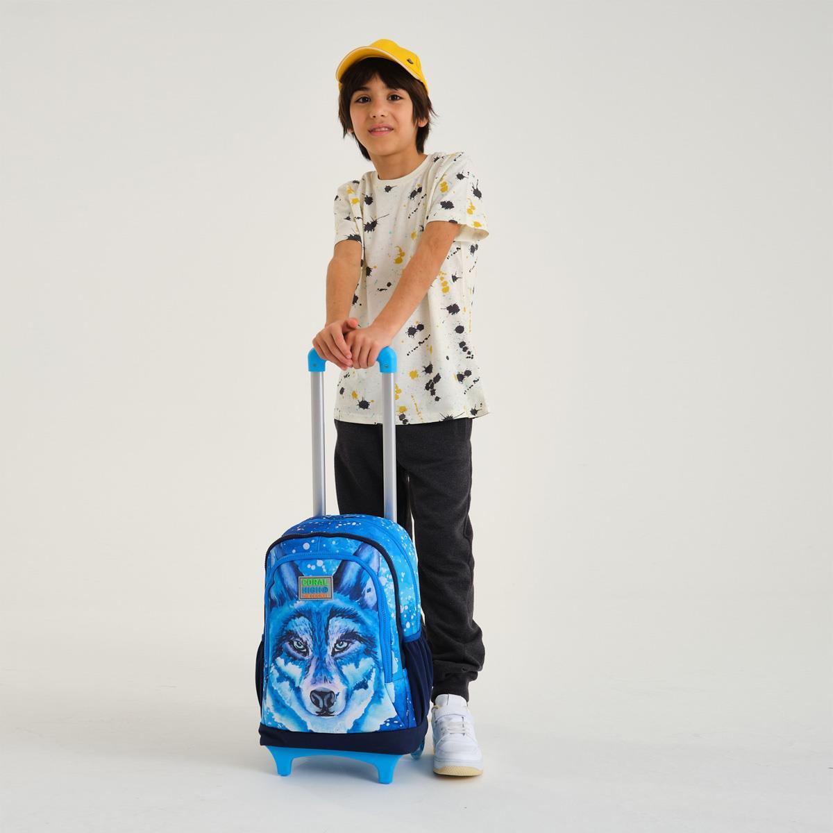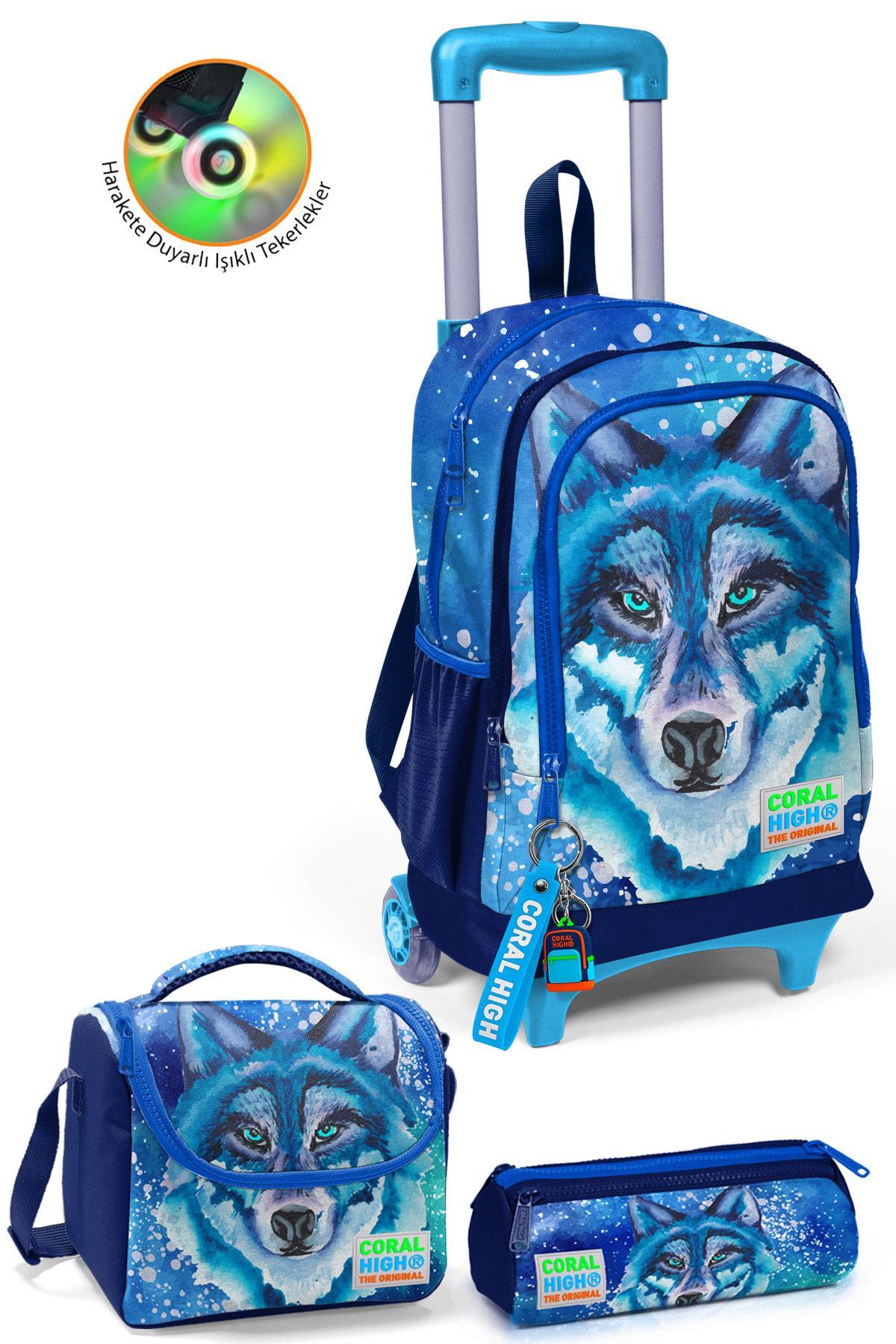Coral High Kids Lacivert Mavi Kurt Desenli Çekçekli 3'lü Çanta Seti SET0123943