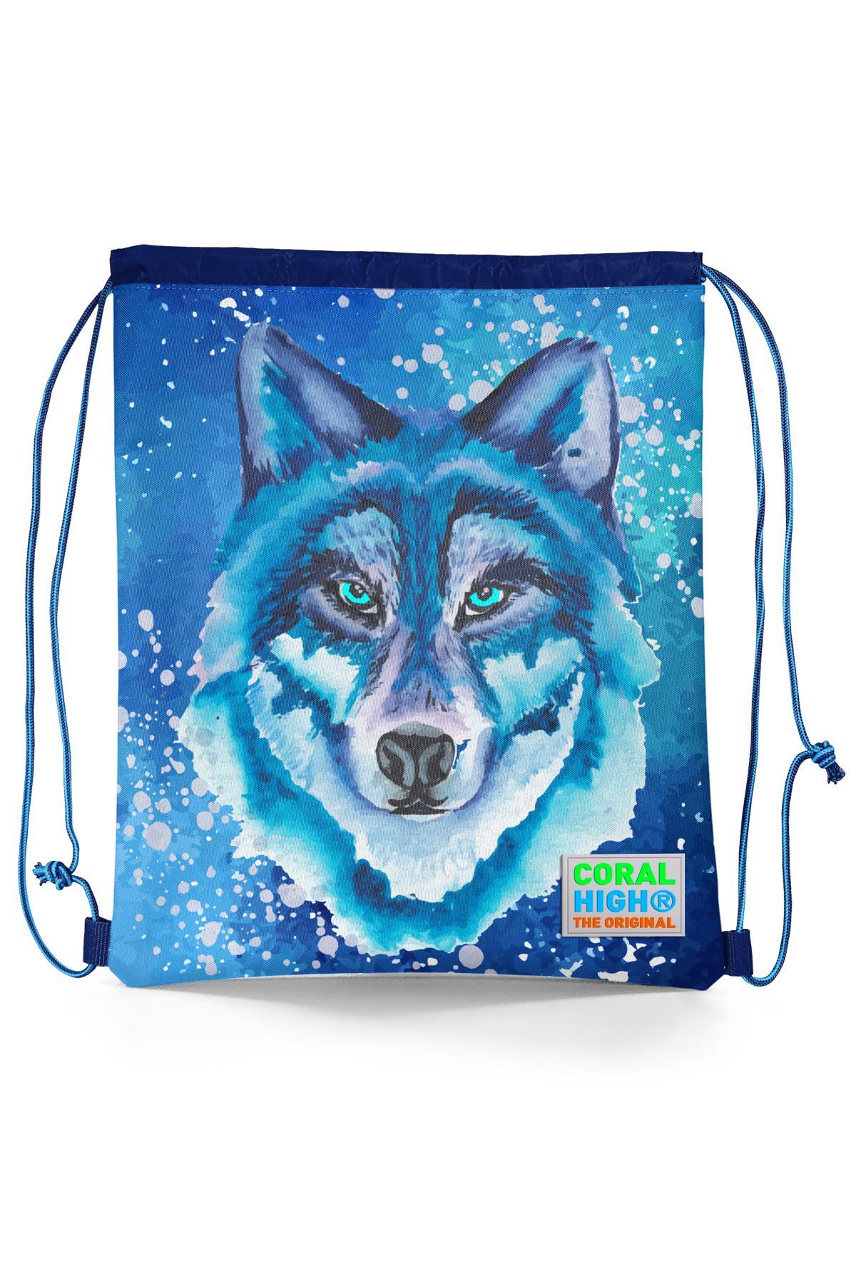 Coral High Kids Lacivert Mavi Kurt Desenli İpli Büzgülü Sırt Çantası 22443