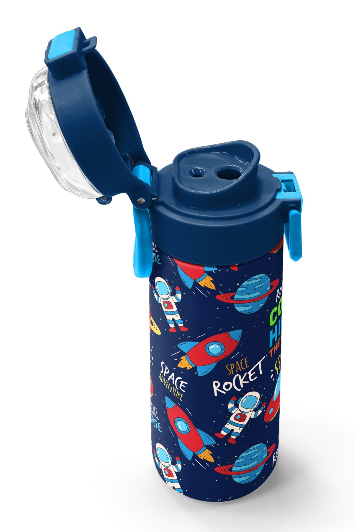 Coral High Kids Lacivert Mavi Astronot Desenli Pipetli ve Direkt İçim Çelik Termos 500 ml 31999