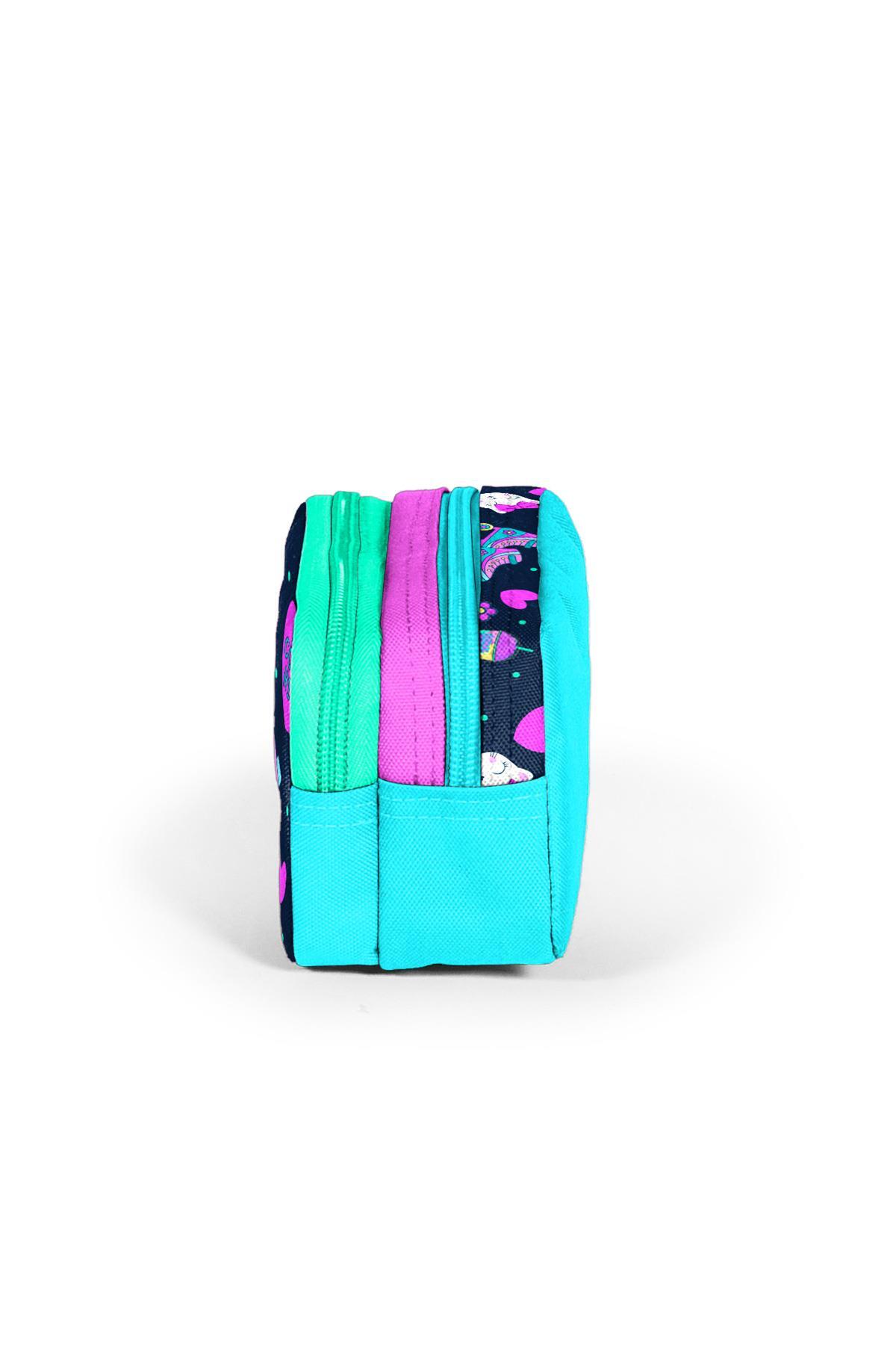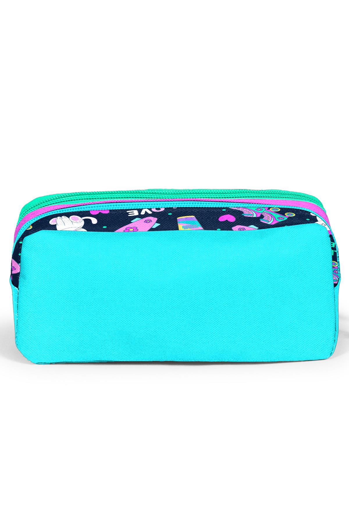 Coral High Kids Lacivert Pembe Kedili Paten Desenli İki Bölmeli Kalem Çantası 12091