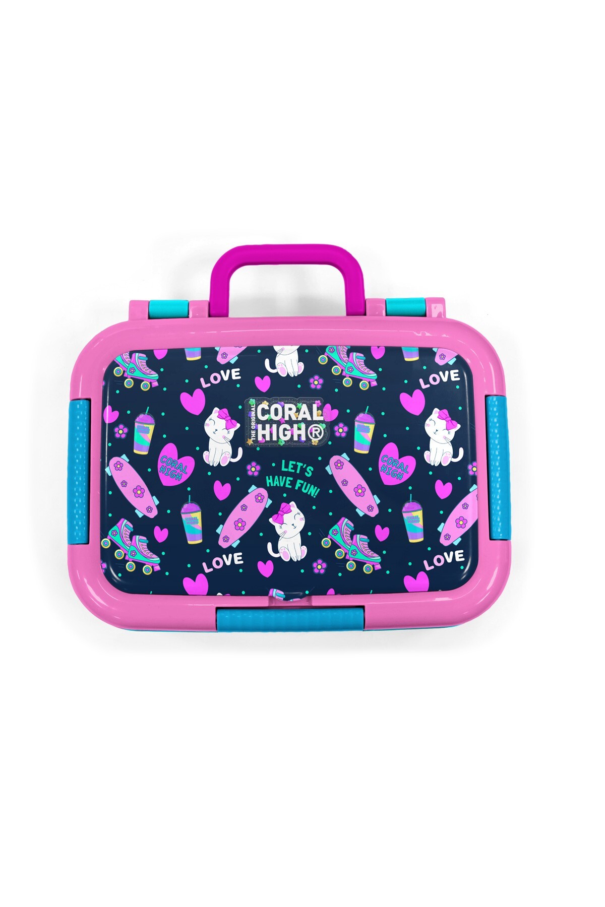 Coral High Kids Lacivert Pembe Kedili Paten Desenli Paslanmaz Çelik Beslenme Kabı 39311