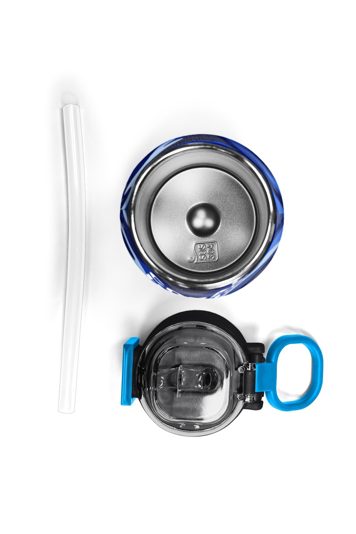 Coral High Kids Lacivert Saks Kamuflaj Desenli Pipetli ve Direkt İçim Çelik Termos 500 ml 31889
