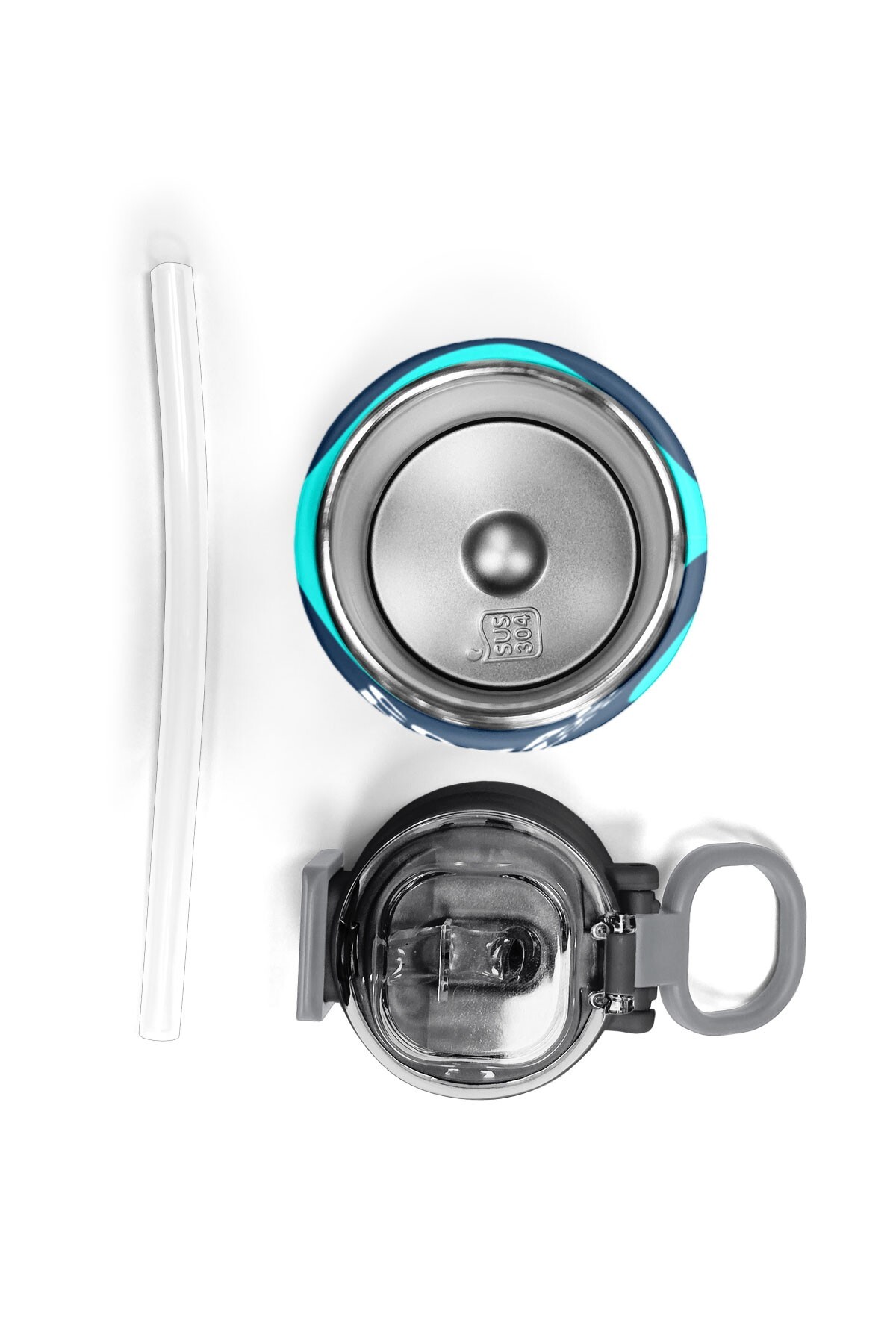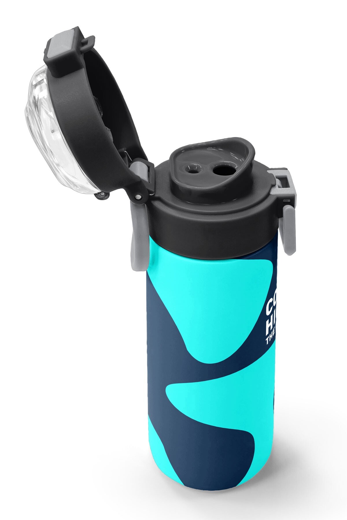 Coral High Kids Lacivert Turkuaz Desenli Pipetli ve Direkt İçim Çelik Termos 500 ml 31886
