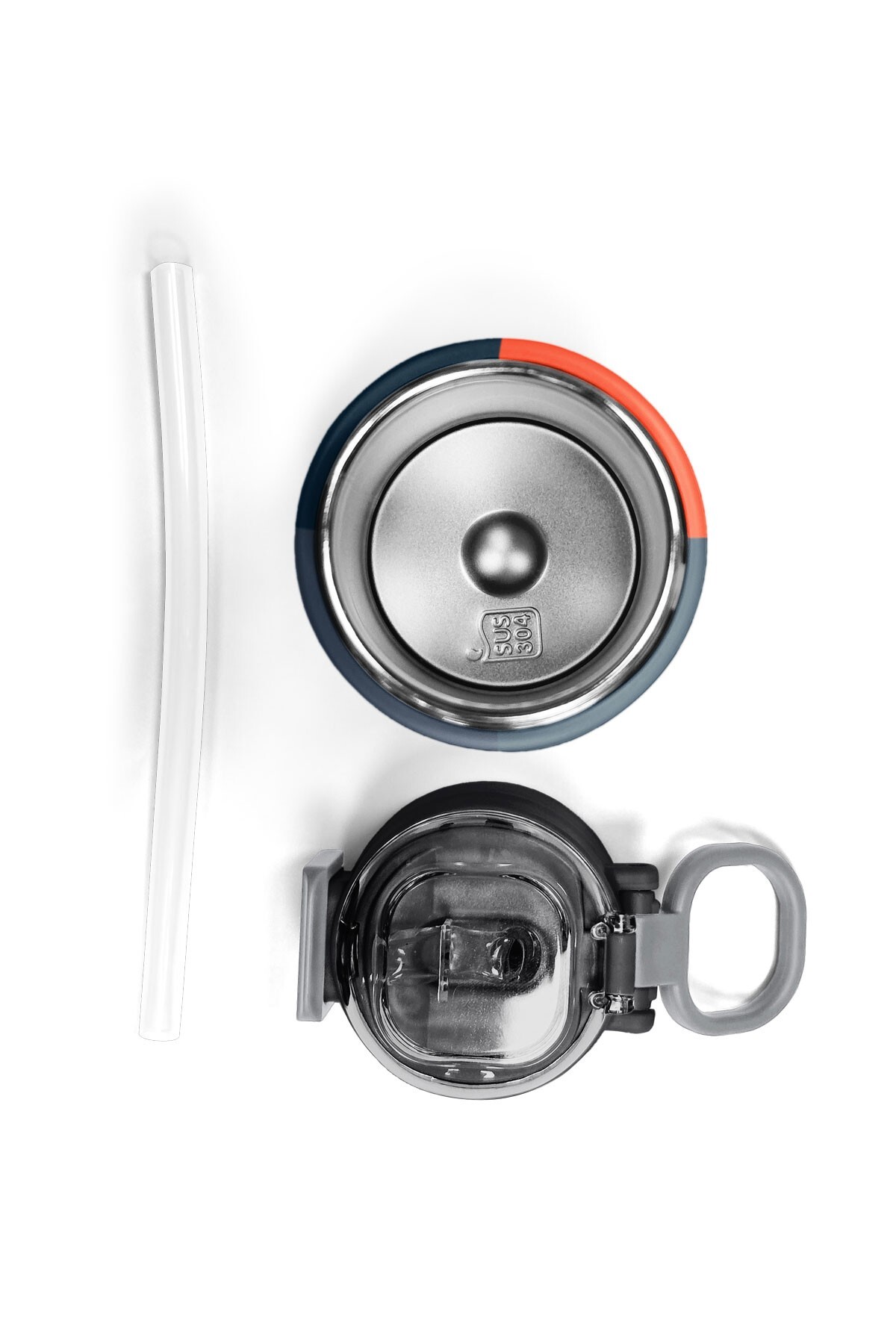 Coral High Kids Lacivert Turuncu Çizgili Pipetli ve Direkt İçim Çelik Termos 500 ml 31998
