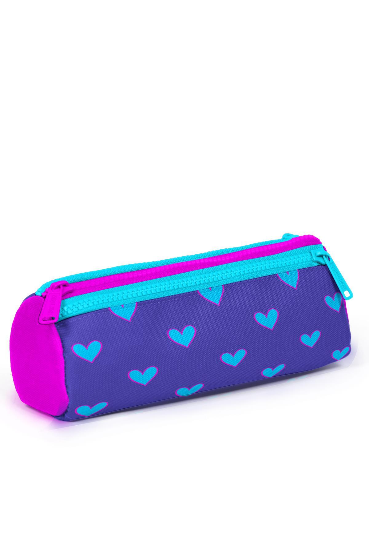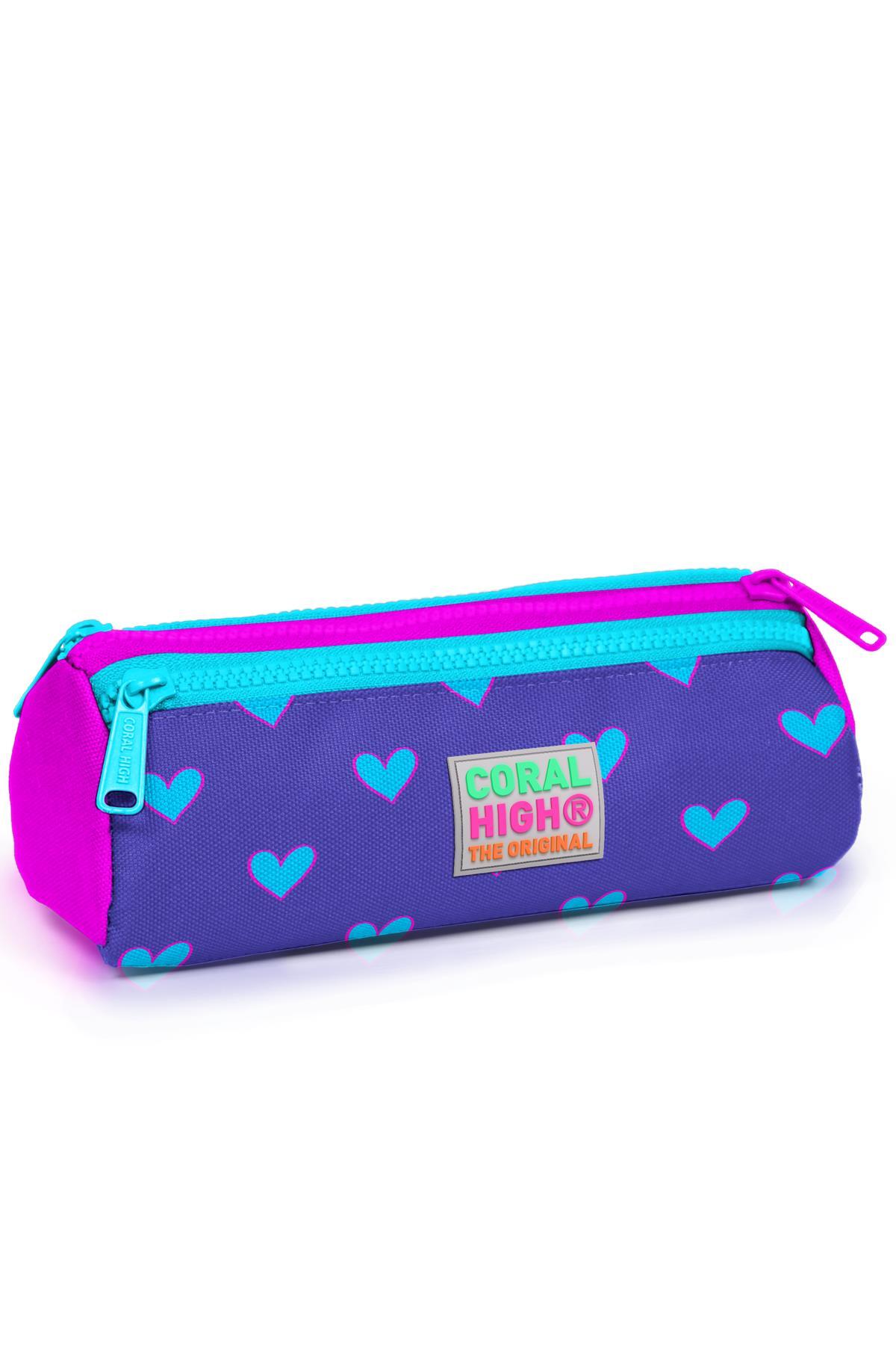 Coral High Kids Lavanta Pembe Kalp Desenli Üç Bölmeli Kalem Çantası 22006