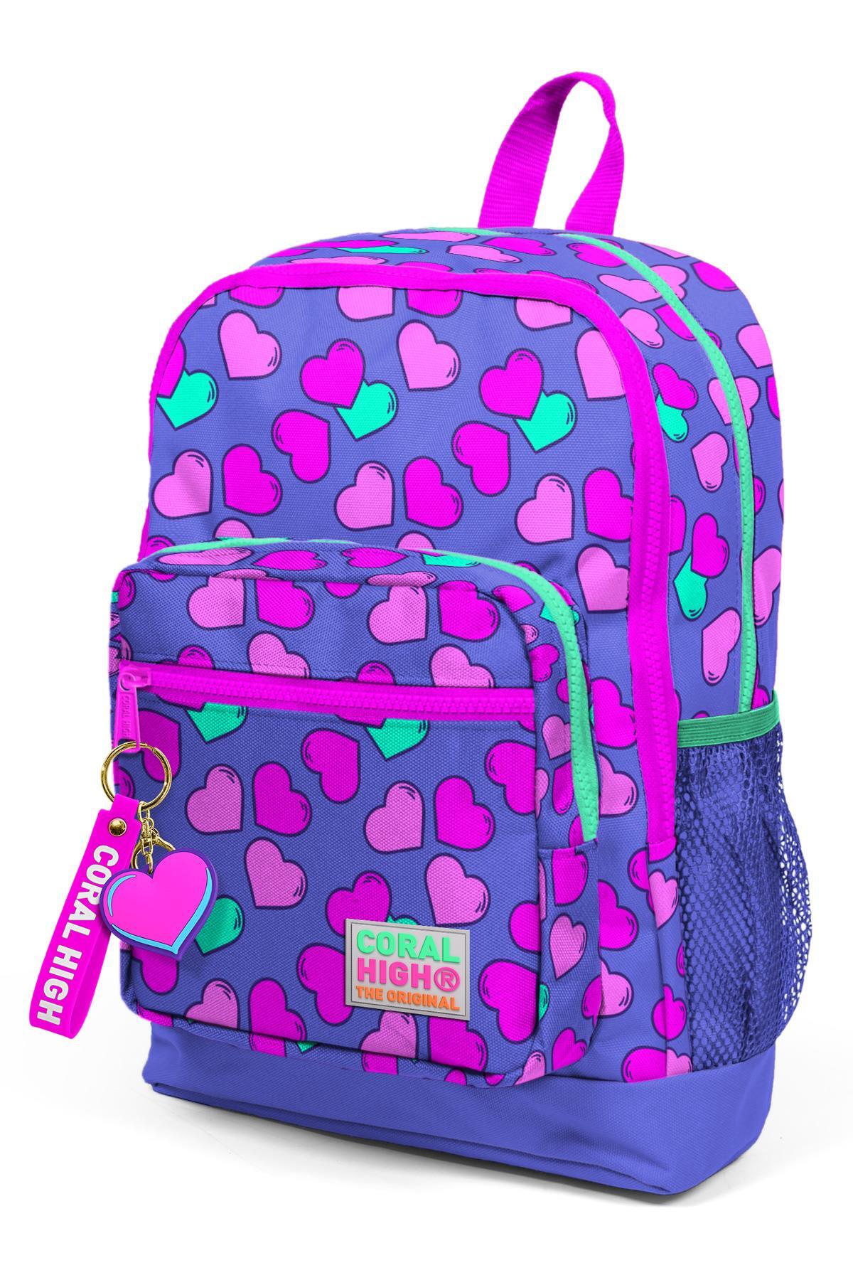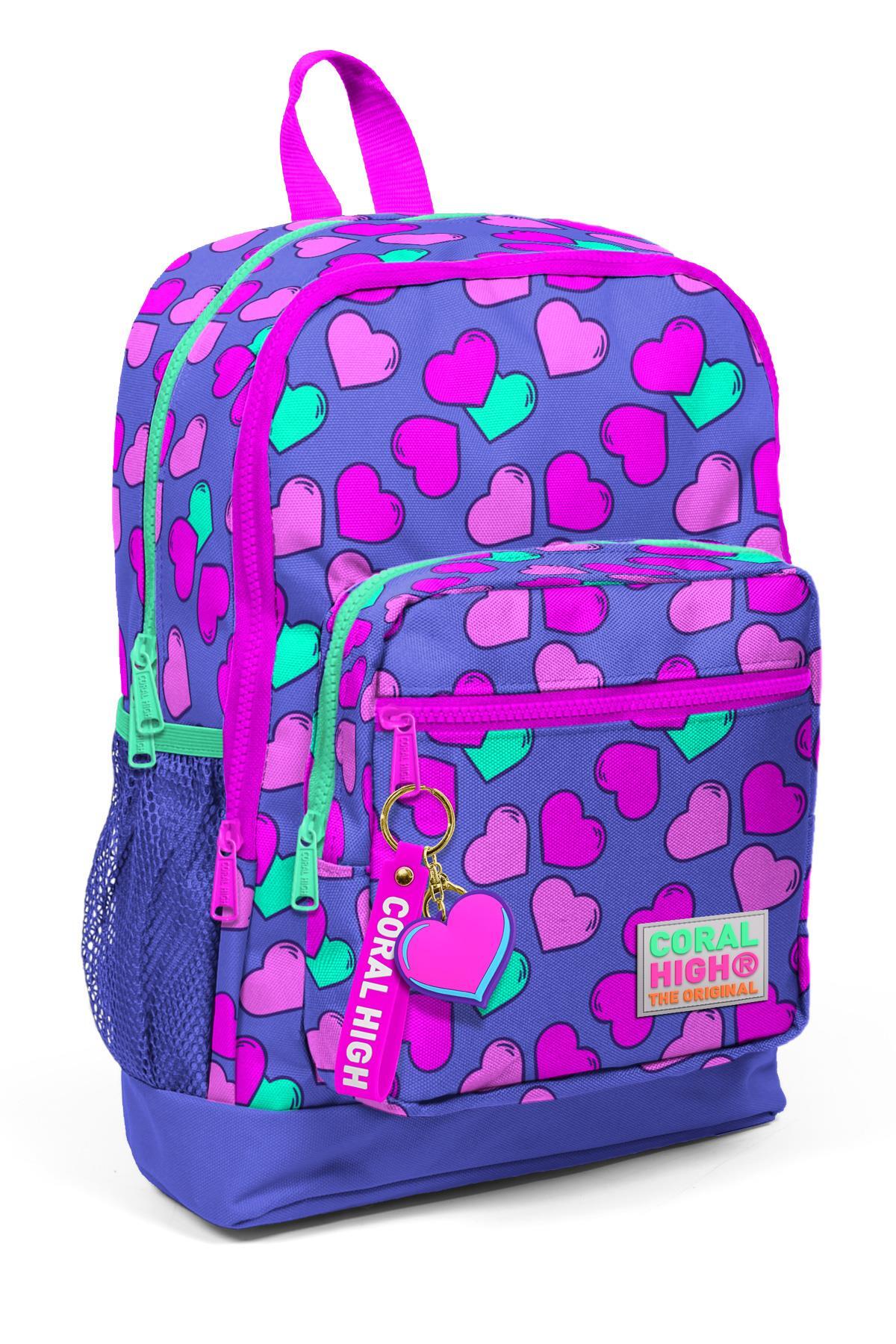 Coral High Kids Lavanta Pembe Kalpli Desenli Dört Bölmeli Okul Sırt Çantası 23463