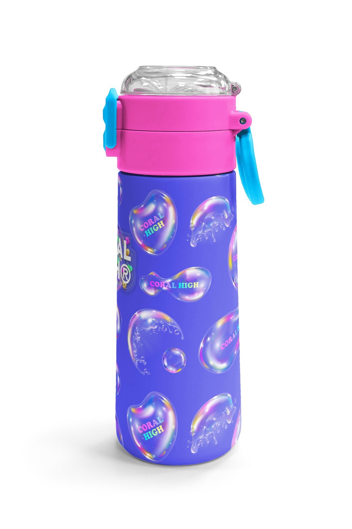 Coral High Kids Lavanta Pembe Baloncuk Desenli Pipetli ve Direkt İçim Çelik Termos 500 ml 31981