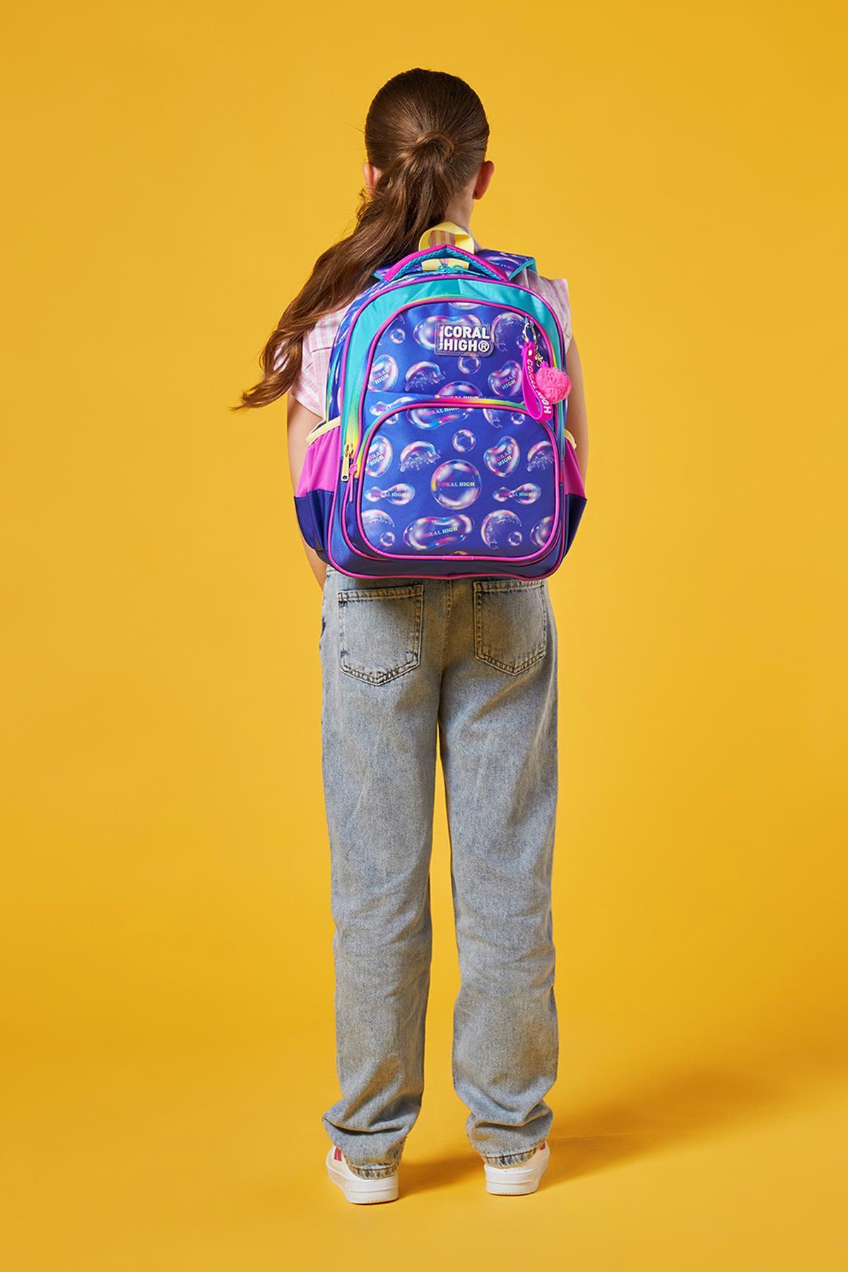 Üç bölmeli okul sırt çantası.