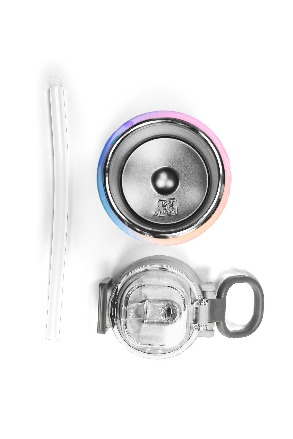 Coral High Kids Mor Açık Pembe Unicorn Desenli Pipetli ve Direkt İçim Çelik Termos 500 ml 31978
