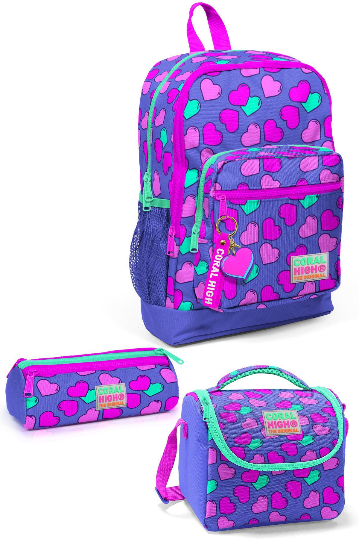 Coral High Kids Lavanta Pembe Kalpli Desenli 3’lü Okul Çanta Seti SET0123463