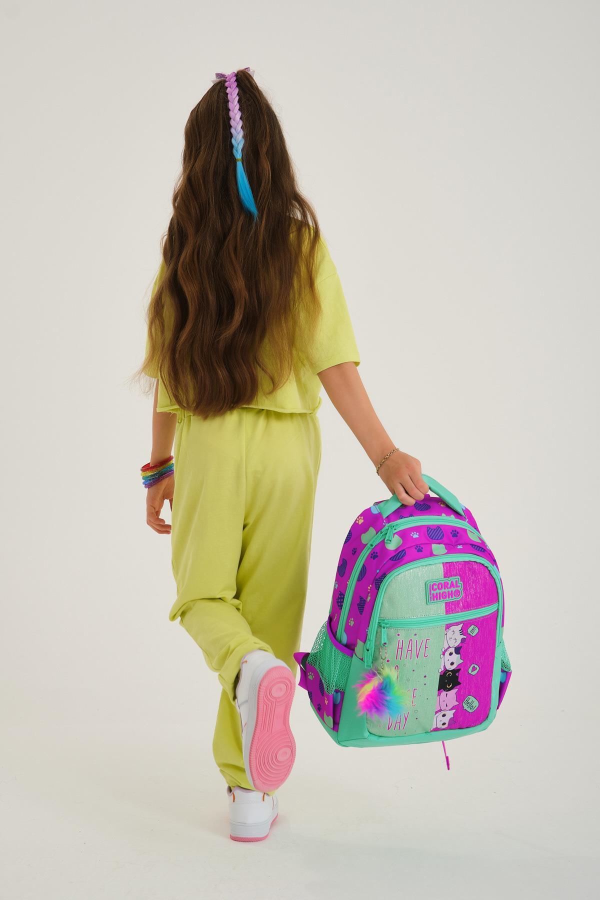 Üç bölmeli okul sırt çantası.
