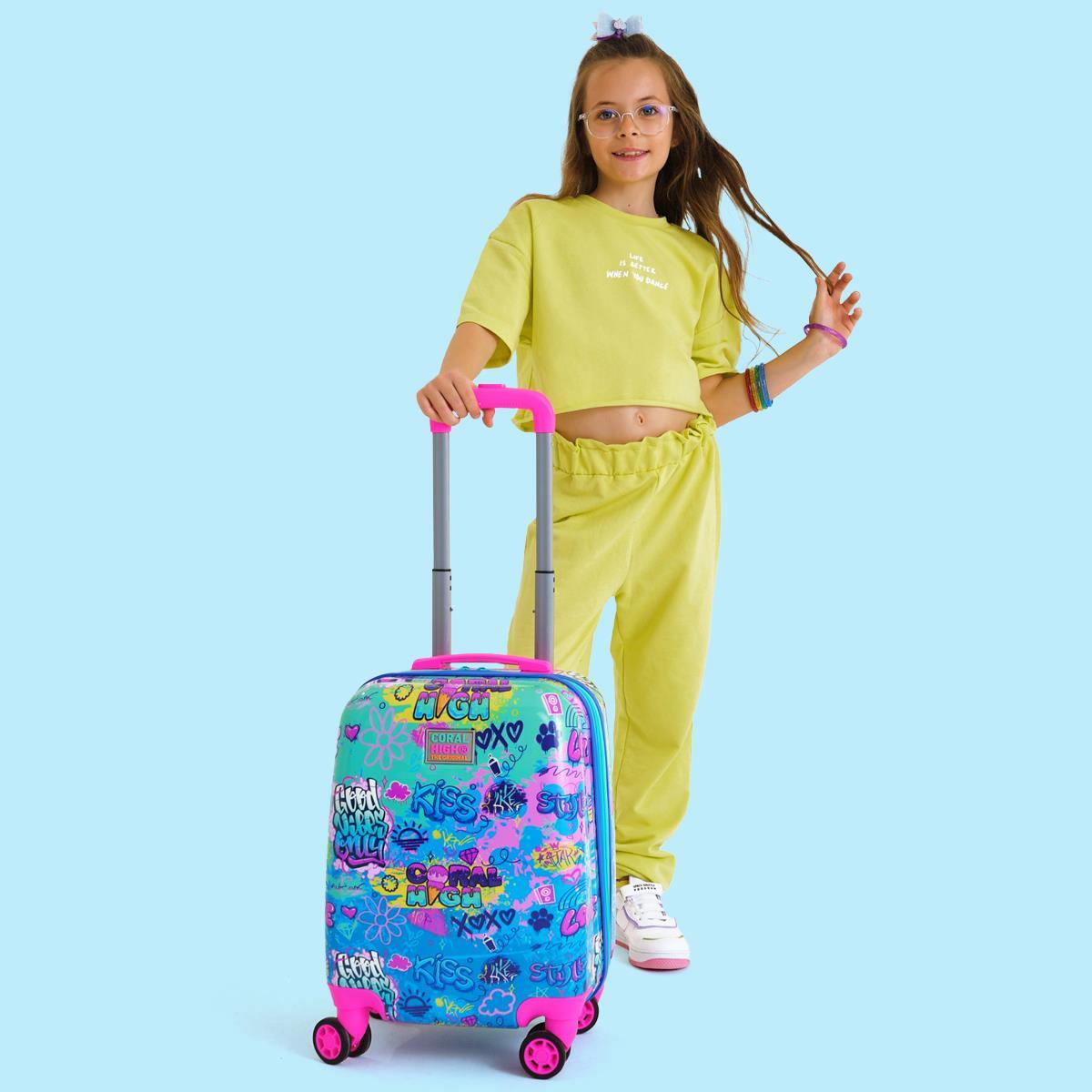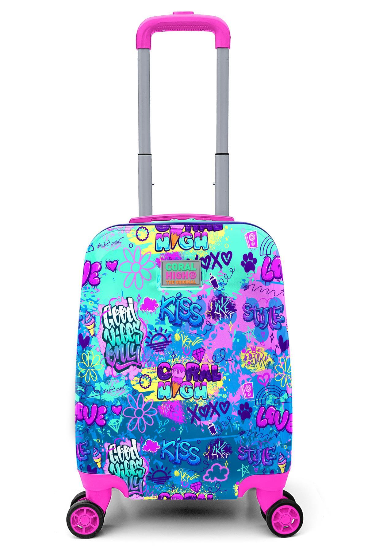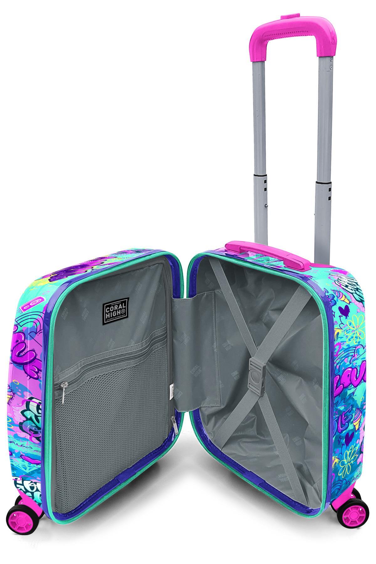 Coral High Kids Lavanta Su Yeşili Grafiti Desenli Çocuk Valizi 16731