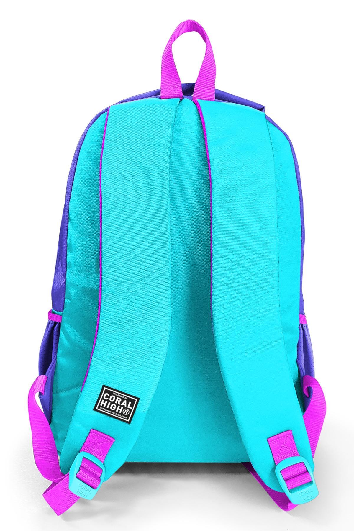 Çantanın yan kısımlarında 2 adet esnek file malzemeden suluk ve aksesuar cebi bulunmaktadır.