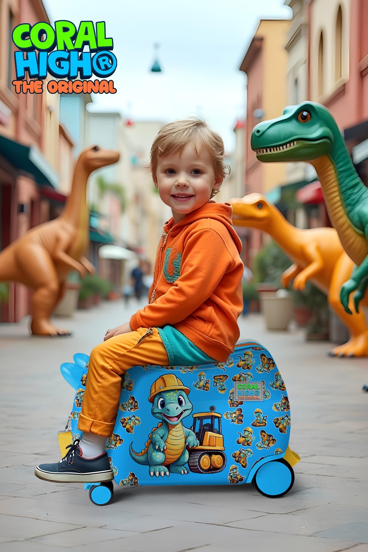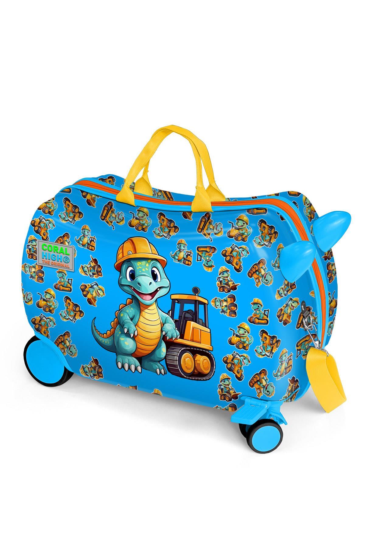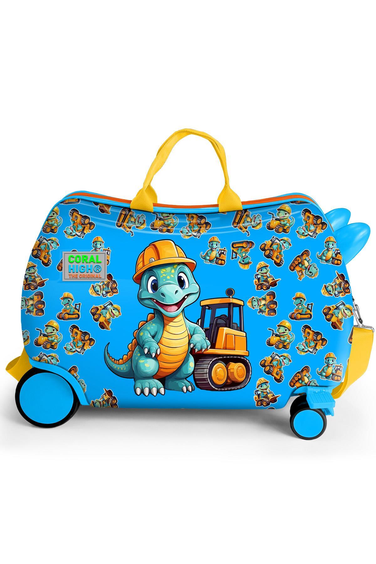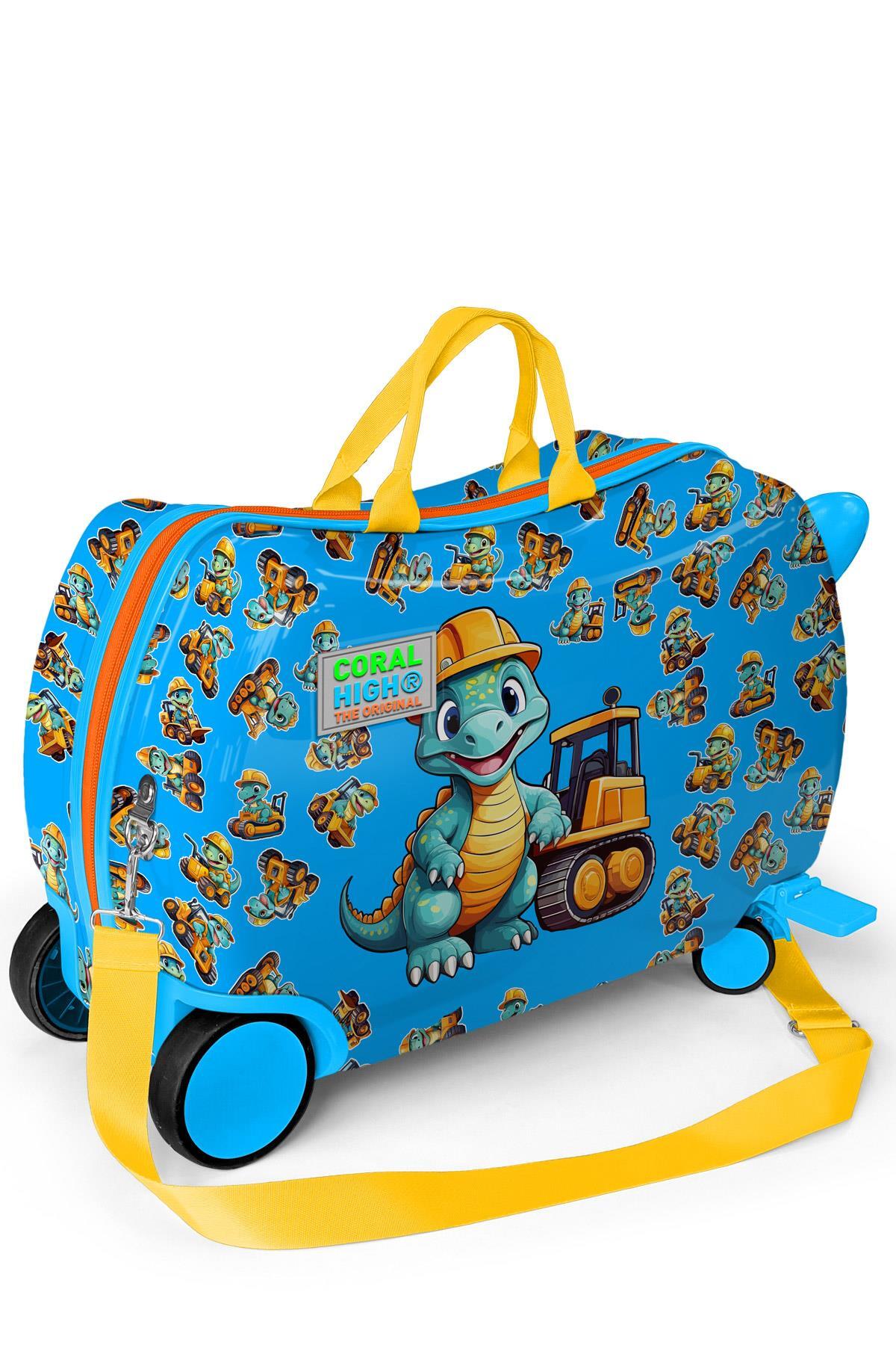 Coral High Kids Mavi Dinozor Desenli Otur-Çek Çocuk Valizi 16362