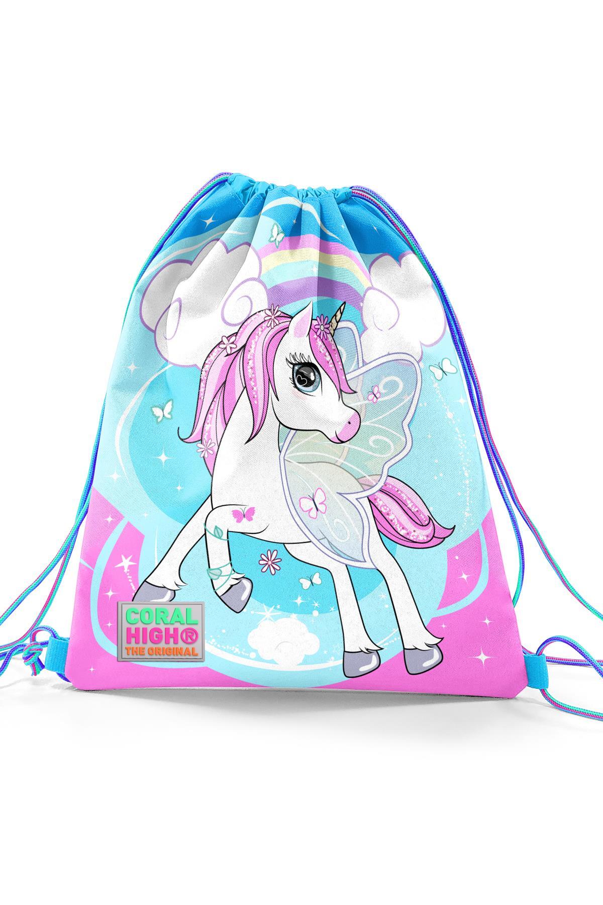 Coral High Kids Mavi Neon Pembe Unicorn Desenli İpli Büzgülü Sırt Çantası 22467