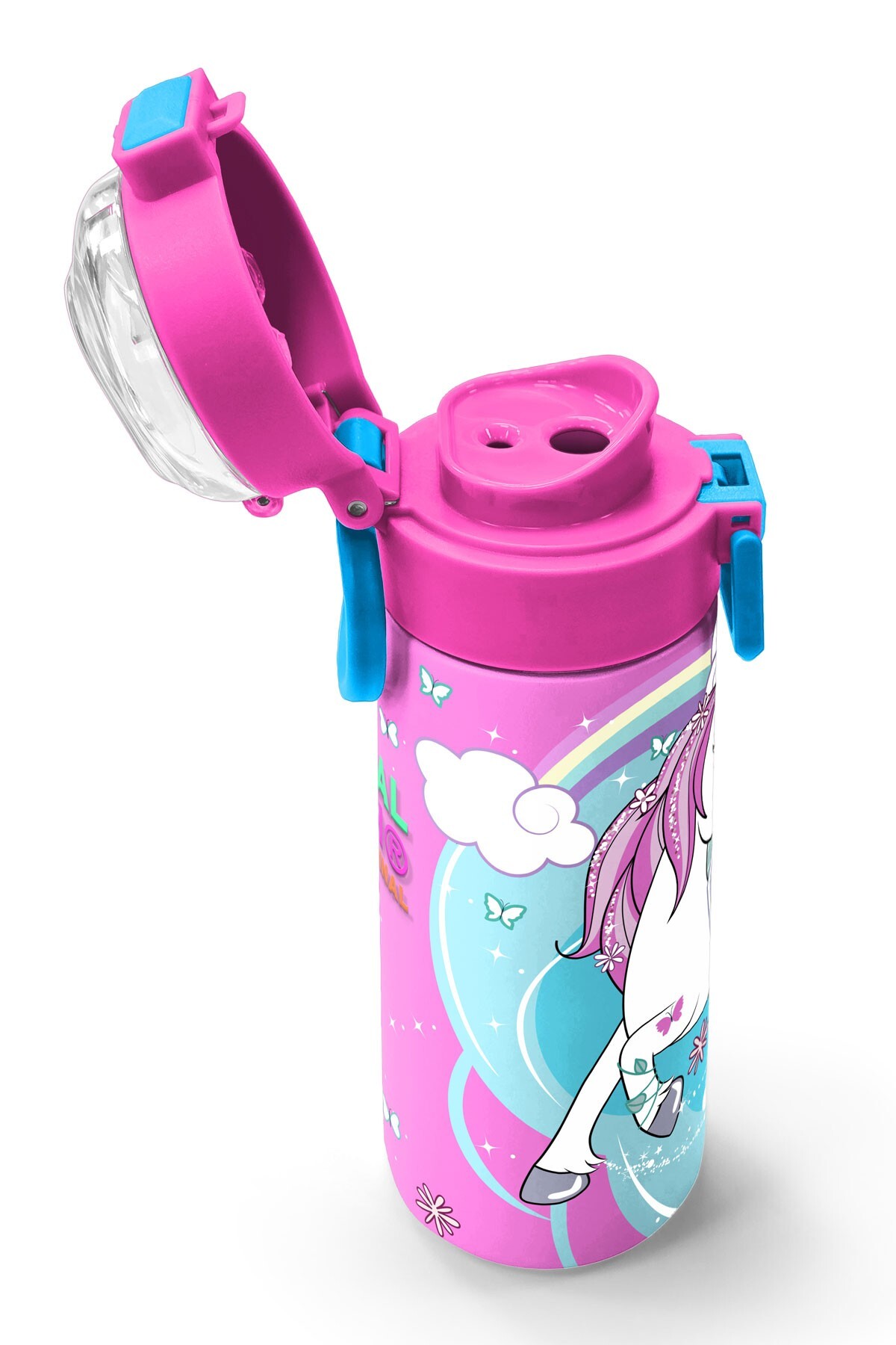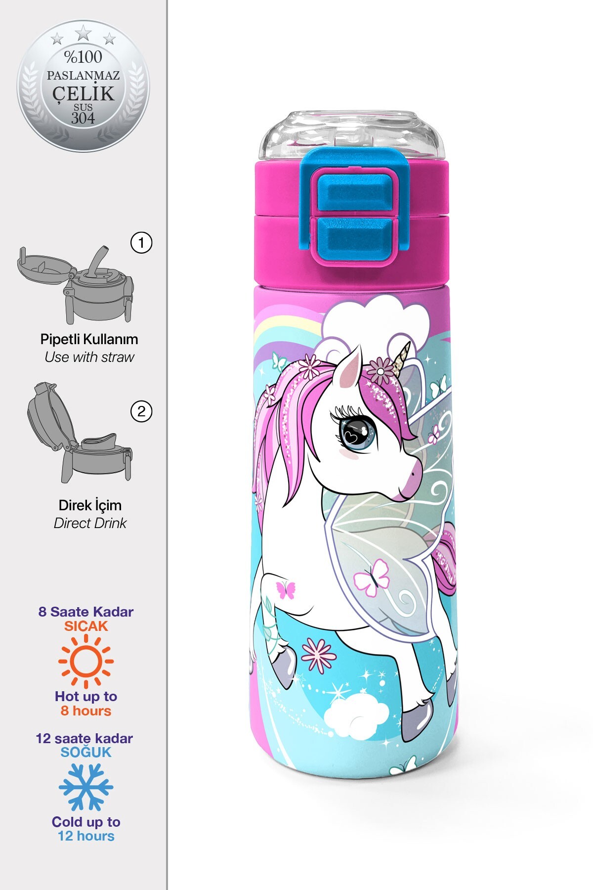Coral High Kids Mavi Neon Pembe Unicorn Desenli Pipetli ve Direkt İçim Çelik Termos 500 ml 31925