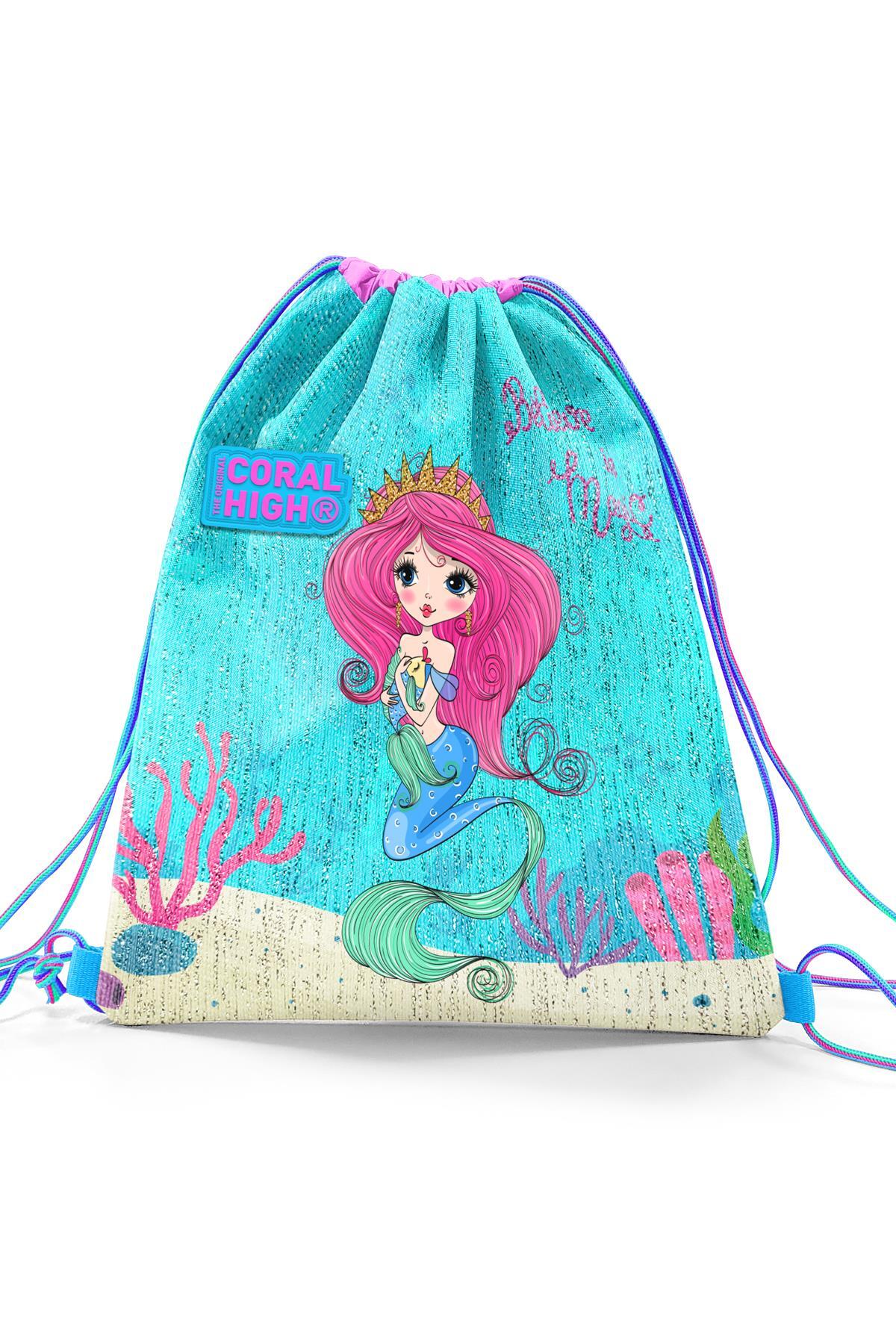 Coral High Kids Mavi Pembe Deniz Kızı Desenli İpli Büzgülü Sırt Çantası 22681